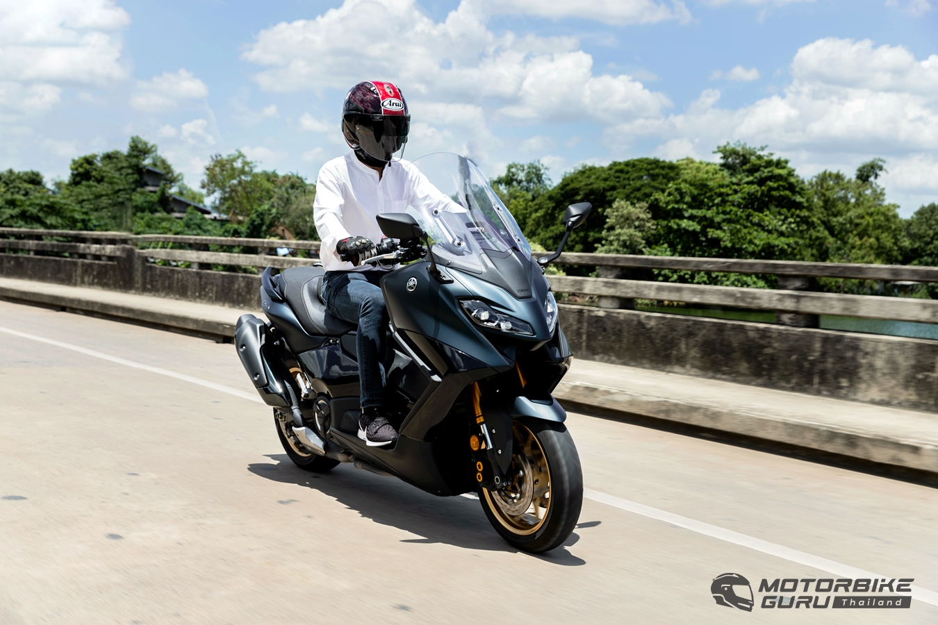 การขี่ทดสอบ ยามาฮ่า TMAX Techmax 2022 เป็นการใช้งานในและนอกเมือง สัมผัสแรกเปลี่ยนไปเพราะท่านั่งและมิติตัวรถที่ปรับใหม่ แต่ขุมพลังเดิมยังให้ความประทับใจด้วยแรงบิดที่ยอดเยี่ยมในรอบต่ำ และเสียงการทำงานของเครื่องยนต์ ของเครื่องยนต์ขนาด 560 ซีซี 2 สูบ ผ่านระบบท่อไอเสียเดิมทำไมเร้าใจได้ขนาดนี้ แม้ขี่ด้วยความเร็วต่ำ ไพเราะไม่หนวกหู พร้อมกระตุ้นให้เร่งความเร็วขึ้นไปอยู่ตลอด นอกจากนี้แรงบิดที่ดีเยี่ยมกระตุ้นความเร้าใจในการขี่อยู่ตลอด รถยังขี่เหมือนเดิม และเพลิดเพลินกับการขี่ทางไกล ง่ายต่อการควบคุม การบังคับเลี้ยวผ่านโค้งเวลาเดินทางให้สมดุลและความนิ่งที่น่าพอใจ ในเมืองก็คล่องตัวเหมือนกับรถขนาดเล็ก เป็นเจนเนอเรชั่นที่ตอบโจทย์การใช้งานในเมืองได้ดียิ่งขึ้น ฟิวเบรกหน่วงชะลอในแบบสกู๊ตเตอร์ที่ ให้ได้ ด้วยน้ำหนักรถที่เยอะและเอนจิ้นเบรกไม่มี ก็ต้องอาศัยความคุ้นชินสักพัก พื้นที่ใต้เบาะก็ให้สเปซแนวลึกที่มากพอใส่สารพัดของส่วนตัวจำเป็นได้มากพอ ระบบไฟส่องสว่างเวลาขี่ยามค่ำคืนชัดเจนและนุ่มนวลตา รูปแบบไฟหน้า-หลังใหม่ให้ความโดดเด่นเฉพาะตัวจริงๆ ไฮไลท์ของการทดสอบเป็นการขี่วันเดียว 400 กม. รวดเดียวนับเป็นความท้าทายไม่น้อย มีแวะปั้มเติมน้ำมันทำธุระปกติ ตลอดจนแวะบันทึกภาพสั้นๆ การปรับชิลด์หน้าแบบไฟฟ้ายังช่วยให้สบายขึ้นเมื่อขี่ผ่านในเมืองและทางโล่ง หน้าจอใหม่พร้อมกับจอยสติ๊กด้านข้างไม่ใช่แค่สวยงามขึ้น แต่ยังช่วยให้การขี่สะดวกสบายและมีสมาธิการเส้นทางข้างหน้ามากขึ้นด้วย เมนูเล่นสักพักก็จะเข้าใจได้ง่าย เพราะไ่ม่ซับซ้อน แต่อีกมุมก็อยากให้แสดงอะไรได้มากกว่านี้ เพราะได้หน้าจอเต็มขนาดนี้แล้ว ส่วนตัวชอบการเลือกธีมแสดงได้ แต่ออยากให้แสดงผลได้มากเหมือนรถยุโรป สรุป ยามาฮ่า TMAX Techmax 2022 ให้การขี่ที่คล่องตัวและง่ายกว่าด้วยในหลายจังหวะ รวมระยะทางทั้งหมดไม่ต่ำกว่า 500 กม. อัตราสิ้นเปลืองบนหน้าจอข้อมูลคำนวณได้ประมาณ 22.00 กม./ลิตร สิ่งที่ชอบ คือ เป็นสปอร์ตสกู๊ตเตอร์ที่มีรูปลักษณ์พรีเมียม และงานดีในทุกรายละเอียดจริงๆ เสียงเร้าใจ แรงบิดมาไว บาลานซ์ตัวรถยอดเยี่ยม ช่วงล่างนุ่มหนึบแน่น ขี่ได้นานทั้งวัน และให้วามรู้สึกเหมือนขี่ซูเปอร์คาร์ 2 ล้อ