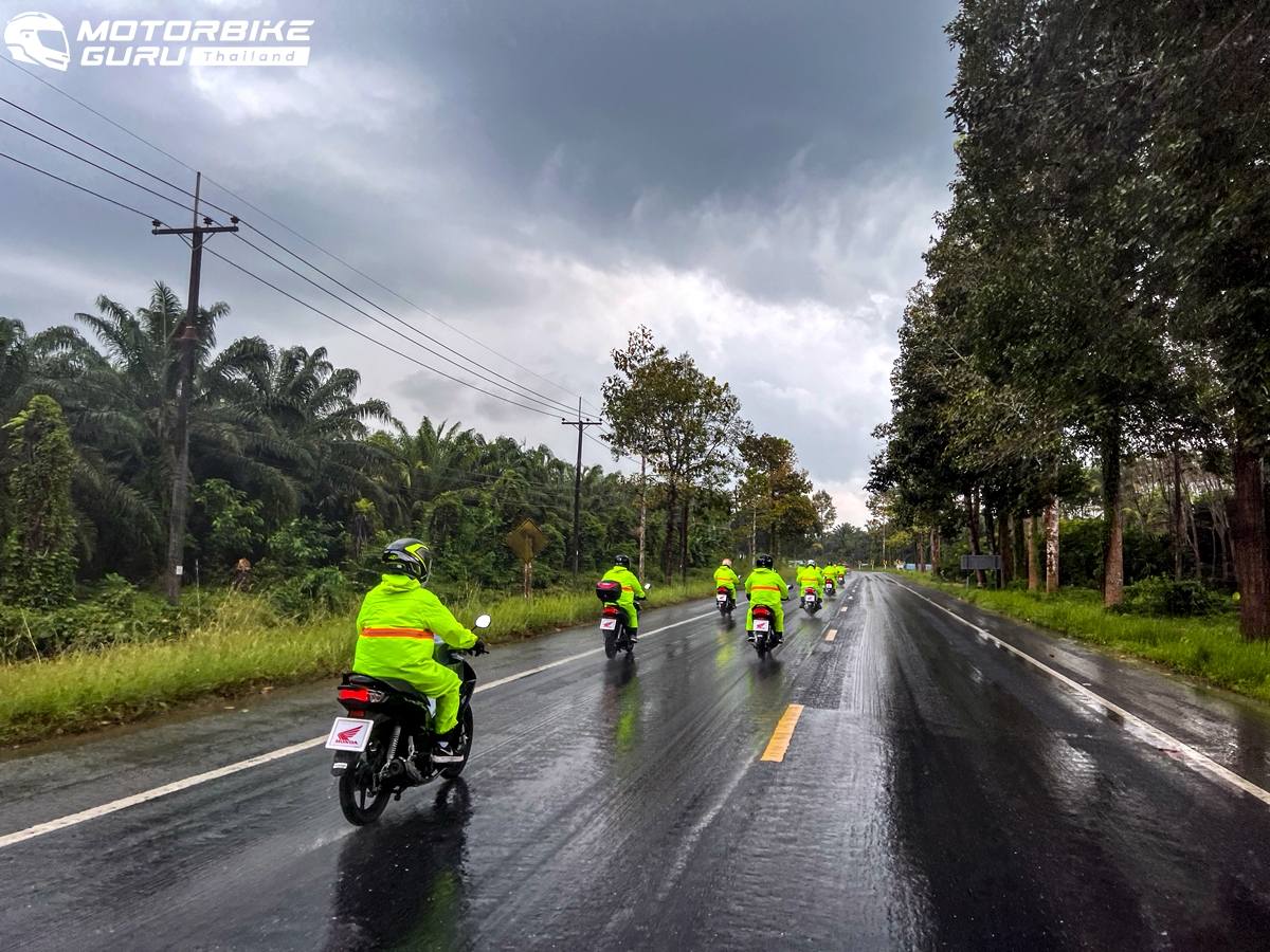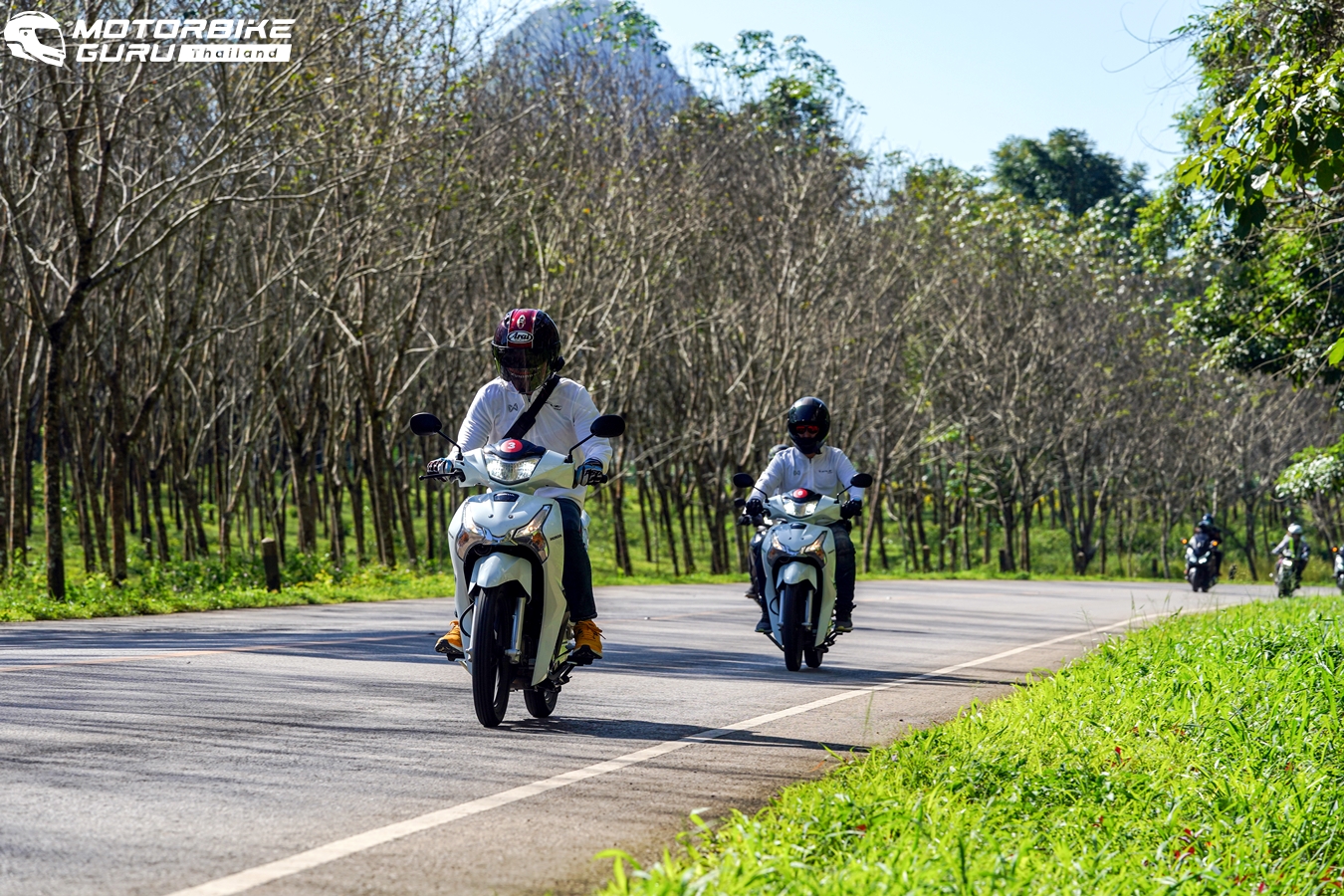 ทีมงานเช็คราคา.คอม / มอเตอร์ไบค์กูรู พร้อมสื่อมวลชนชั้นนำเดินทางลงกันไปที่จังหวัดตรัง เพื่อร่วมพิสูจน์ ฮอนด้า All New Wave125i กับภารกิจพิชิต 10 หาด ด้วยน้ำมันเพียง 1 ถัง นับว่าท้าทายไม่น้อย เพราะต้องขี่แบบท่องเที่ยวจริงๆ ต้องจอดแวะเช็คอินบันทึกภาพทั้ง 10 หาด เราแบ่งการเดินทางออกเป็น 2 วัน ทริปนี้ขี่กันไปเป็นขบวน วันแรกขบวนฯ ออกเดินทางกันในช่วงบ่ายโดยไปกันที่หาดปากเมง เส้นทางถนนสัญจรปกติ หาดนี้นับว่าเป็นแหล่งท่องเที่ยวใหญ่พอสมควร มีร้านอาหารหลากหลายขนานไปกับถนน จากนั้นก็ต่อไปยังหาดวิวาห์ใต้สมุทรใช้เวลาบันทึกภาพพร้อมซัมซับเรื่องเล่าของหาดแห่งนี้ ก่อนเดินทางเลาะถนนริมทะเลต่อไปยังหาดหัวหินที่ เมื่อถึงหาดได้ไม่นาน ฝนก็ตกลงมาอย่างหนัก ต้องเอาเสื้อคลุมฝนออกมาใส่เพื่อขี่เดินทางกันต่อ นับเป็นความท้าทายไม่น้อยเพราะหนทางจากนี้จนจบวันยังเหลืออีกไกล การขี่ฝ่าสายฝนที่ตกหนัก เบา สลับหยุดนิ่ง ถนนที่นองไปด้วยน้ำหลายจุดอีกทั้งเศษทรายที่ไหลเลยเข้ามาในทาง ทำให้การขี่ต้องระมัดระวังเพิ่มขึ้น แต่ความเร็วที่เราใช้ยังอยู่แถว 80-90 กม./ชม. เป็นส่วนใหญ่ Wave125i ให้การควบคุมที่น่าประทับใจเกินคาด เพราะแม้เป็นรถครอบครัวเน้นใช้งานทั่วไปและประหยัด แต่สมรรถนะการขี่ทางไกลกลับตอบสนองได้อย่างน่าทึ่ง ด้วยช่วงล่างใหม่ที่มีระยะยุบมากกว่าเดิมทำให้การยึดเกาะดีขึ้นโดยไม่สูญเสียอัตราเร่ง และยางติดรถก็แทบไม่มีอาการให้กังวลไม่ว่าขี่ผ่านน้ำ เข้าโค้งเปียก ทำให้ขี่ได้อย่างมั่นใจจนถึงที่พักในอ่าวนาง จังหวัดกระบี่ โดยปลอดภัยทุกคัน