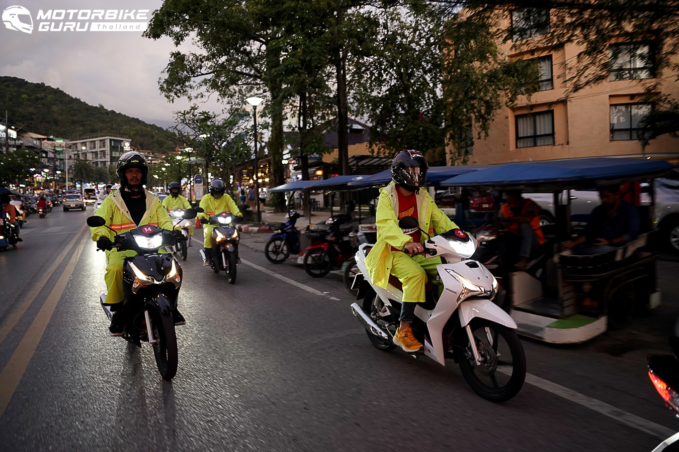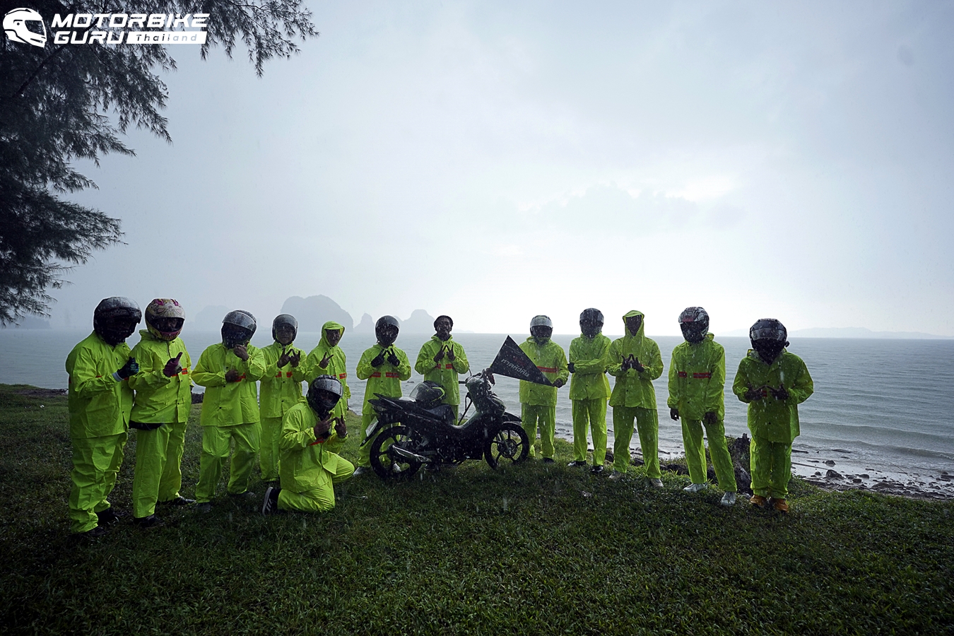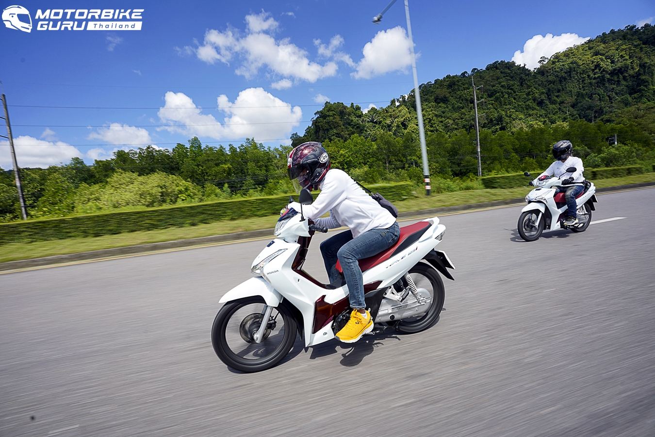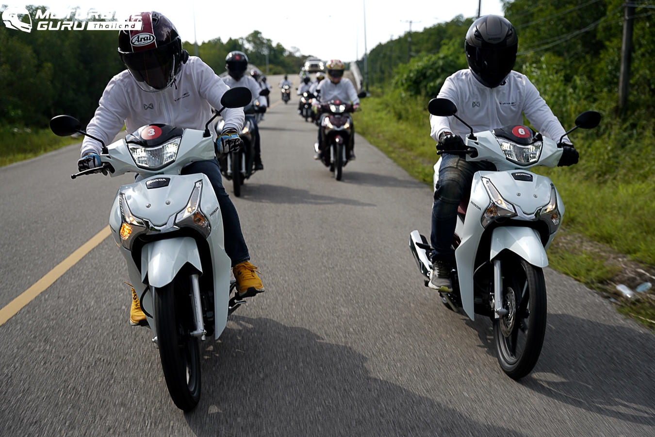 ทีมงานเช็คราคา.คอม / มอเตอร์ไบค์กูรู พร้อมสื่อมวลชนชั้นนำเดินทางลงกันไปที่จังหวัดตรัง เพื่อร่วมพิสูจน์ ฮอนด้า All New Wave125i กับภารกิจพิชิต 10 หาด ด้วยน้ำมันเพียง 1 ถัง นับว่าท้าทายไม่น้อย เพราะต้องขี่แบบท่องเที่ยวจริงๆ ต้องจอดแวะเช็คอินบันทึกภาพทั้ง 10 หาด เราแบ่งการเดินทางออกเป็น 2 วัน ทริปนี้ขี่กันไปเป็นขบวน วันแรกขบวนฯ ออกเดินทางกันในช่วงบ่ายโดยไปกันที่หาดปากเมง เส้นทางถนนสัญจรปกติ หาดนี้นับว่าเป็นแหล่งท่องเที่ยวใหญ่พอสมควร มีร้านอาหารหลากหลายขนานไปกับถนน จากนั้นก็ต่อไปยังหาดวิวาห์ใต้สมุทรใช้เวลาบันทึกภาพพร้อมซัมซับเรื่องเล่าของหาดแห่งนี้ ก่อนเดินทางเลาะถนนริมทะเลต่อไปยังหาดหัวหินที่ เมื่อถึงหาดได้ไม่นาน ฝนก็ตกลงมาอย่างหนัก ต้องเอาเสื้อคลุมฝนออกมาใส่เพื่อขี่เดินทางกันต่อ นับเป็นความท้าทายไม่น้อยเพราะหนทางจากนี้จนจบวันยังเหลืออีกไกล การขี่ฝ่าสายฝนที่ตกหนัก เบา สลับหยุดนิ่ง ถนนที่นองไปด้วยน้ำหลายจุดอีกทั้งเศษทรายที่ไหลเลยเข้ามาในทาง ทำให้การขี่ต้องระมัดระวังเพิ่มขึ้น แต่ความเร็วที่เราใช้ยังอยู่แถว 80-90 กม./ชม. เป็นส่วนใหญ่ Wave125i ให้การควบคุมที่น่าประทับใจเกินคาด เพราะแม้เป็นรถครอบครัวเน้นใช้งานทั่วไปและประหยัด แต่สมรรถนะการขี่ทางไกลกลับตอบสนองได้อย่างน่าทึ่ง ด้วยช่วงล่างใหม่ที่มีระยะยุบมากกว่าเดิมทำให้การยึดเกาะดีขึ้นโดยไม่สูญเสียอัตราเร่ง และยางติดรถก็แทบไม่มีอาการให้กังวลไม่ว่าขี่ผ่านน้ำ เข้าโค้งเปียก ทำให้ขี่ได้อย่างมั่นใจจนถึงที่พักในอ่าวนาง จังหวัดกระบี่ โดยปลอดภัยทุกคัน