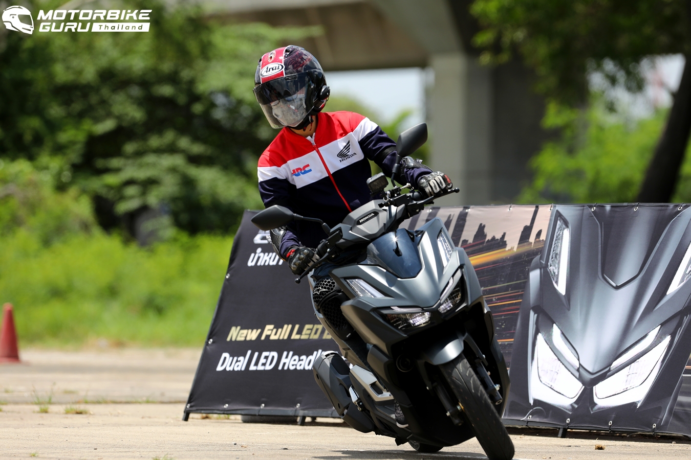 จุดสำคัญคือ การเบรกบนพื้นผิวทรายที่เทกระจายรอบ แม้เป็น ABS หน้า แต่ระบบก็ทำงานสะท้อนขึ้นมาให้ได้รู้สึกและไหลหยุดได้สั้นจริง ผู้เขียนลองกระแทกคันเร่งออกตัวแบบทันทีบนพื้นผิวทราย ตั้งใจให้ล้อหลังเสียแทร็คชันเพื่อจับอาการว่ารถคลาสนี้ที่ไม่มี แทร็คชัน คอนโทรล จะตอบสนองเวลาออกตัวบนพื้นลื่นอย่างไร ก็พบว่าล้อหลังที่เริ่มฟรีจนท้ายรถเริ่มดันออกข้างให้รู้สึก ก็สวยด้วยการยกคันเร่งจนรถเริ่มทรงตัวตรงแล้วเปิดคันเร่งไปต่อได้แบบสบายๆ การขี่ทดสอบเน้นไปที่เรื่องของสมรรถนะตัวรถเป็นหลักซึ่ง All New Click 160 ทำได้ดีเยี่ยมจากความรู้สึกที่ได้ขี่เทียบกับกลุ่มรถขนาดไม่เกิน 160 ซีซี ในราคาไม่เกิน 7 หมื่นบาท ขี่แล้วชอบเลย