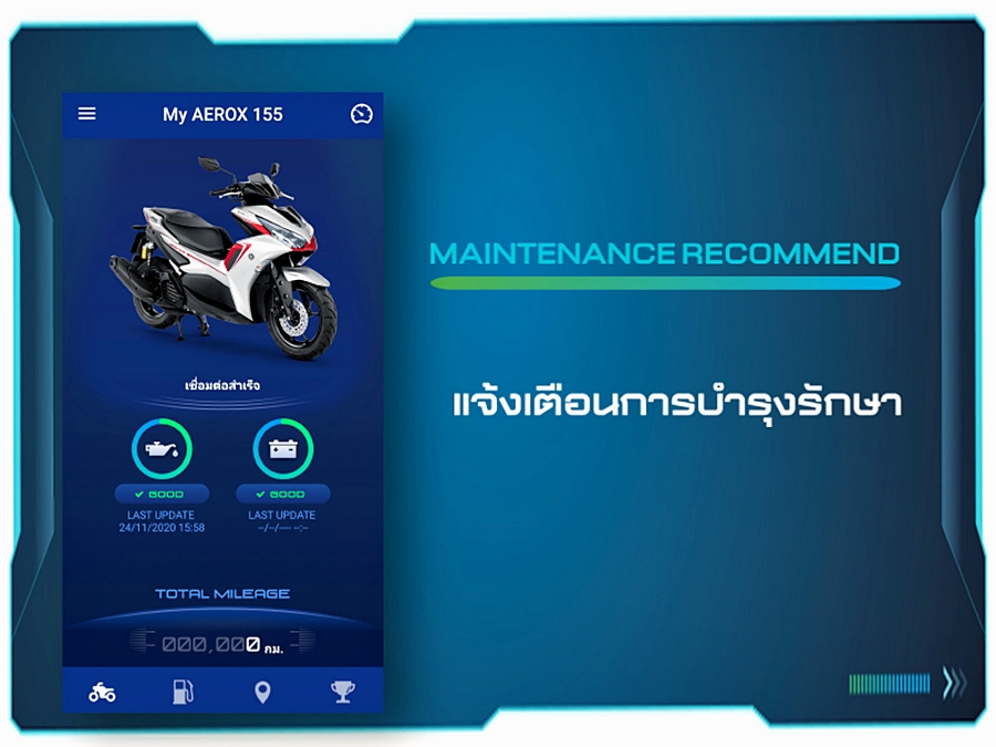 Yamaha Y-Connect Application สามารถแจ้งสถานะของน้ำมันเครื่อง และแบตเตอรี่ พร้อมทั้งแจ้งเตือนการบำรุงรักษา โดยระบบจะแสดงผลเป็นสีเขียว เหลือง และแดงตามระยะการใช้งาน
