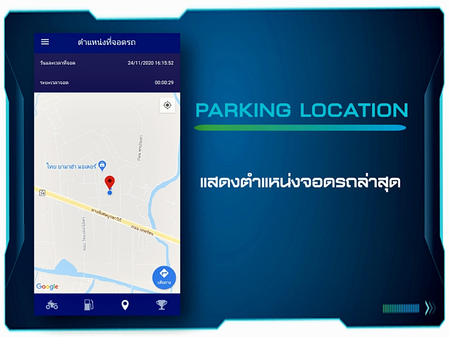 Yamaha Y-Connect Application สามารถแสดงตำแหน่งที่จอดรถล่าสุดด้วย GPS ของมือถือ ช่วยในการหารถเมื่ออยู่ในลานจอดรถขนาดใหญ่