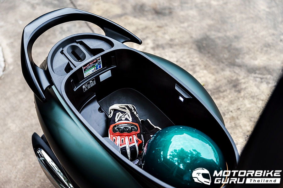 สวิตช์กุญแจควบคุมการล็อคหรือปลดล็อคเบาะและฝาถังน้ำมัน เมื่อหมุนไปตำแหน่ง Open ก็สามารถเปิดเบาะหรือฝาถังน้ำมันได้ สะดวกและปลอดภัย โดยเฉพาะ New Grand Filano Hybrid connected หนึ่งเดียวที่ดีไซน์การใช้งานให้สะดวกสบายด้วยฝาถังน้ำมันด้านหน้าเติมสะดวก กล่องเก็บของใต้เบาะขนาดใหญ่ถึง 27 ลิตร เก็บหมวดกันน็อตได้ 2 ใบ พร้อมกับไฟส่องสว่าง LED สะดวกในการหาของ