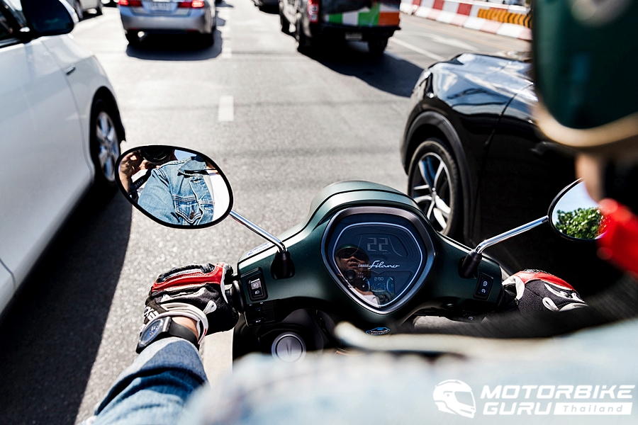 กระจกมองข้างขนาดใหญ่ อยู่ในตำแหน่งที่มองง่ายไม่เกะกะในการขับขี่ระหว่างช่องแคบ ๆ ขณะรถติด พร้อมกับช่วงความกว้างของเบาะและตัวรถที่ไม่กว้างเกินไปทำให้สามารถขับขี่ผ่านช่องแคบ ๆ ได้สบาย ได้ทั้งอัตราเร่งดี เบรกชัวร์ เบาคล่องตัว ทำให้ขับขี่ได้ง่ายไม่เมื่อยล้า แถมมาพร้อมความประหยัดกับระบบ Stop & start system สามารถเลือกเปิด-ปิดระบบใช้งานได้เพื่อลดพลังงานและมลพิษอีกด้วย