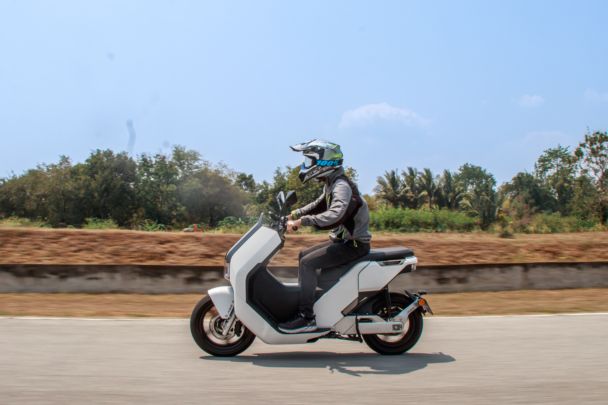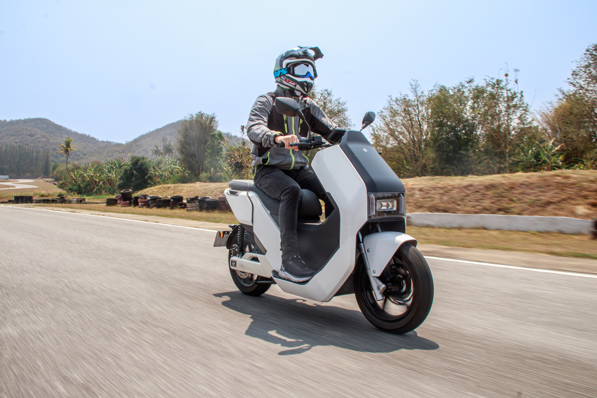 อย่างไรก็ตามครั้งนี้เป็นการลองสมรรถนะตัวรถในสนามแข่งจริงอย่าง แก่งกระจานเซอร์กิต ที่มีความยาวเต็มรอบอยู่ที่ 2.4 กม. และรอบสั้นอยู่ที่ 1.004 กม. ช่วงแรกได้ลงไปวอร์มอัพแบบฟูลแล็ปรอบใหญ่ 4 รอบสนาม เพื่อทำความคุ้นเคยกับตัวรถในหลายๆ ด้าน ทั้งการเดินคันเร่ง เบรก เข้าโค้ง และลองโหมดต่างๆ จนคุ้นชิน ซึ่งให้ความรู้สึกใกล้เคียงกับการขี่รถเครื่องยนต์สันดาปไม่น้อย จนมาถึงช่วงแข่งในรุ่น EV bike โดยเป็นการแข่ง 2 รอบสนามสั้น ทั้งหมดรวม 2.008 กม. ผู้เขียนปรับโหมดเป็นสปอร์ตสำหรับการแข่ง ตัวรถตอบสนองได้ดีตั้งแต่เปิดคันเร่งเต็มที่ การควบคุมตัวรถกับแทร็คที่มีปั้มขึ้นลงก็ดีเช่นกัน การชะลอเบาเบรกก่อนเข้าโค้ง ทำได้ดีกว่ารถสกู๊ตเตอร์สันดาปทั่วไปด้วย เพราะใช้เป็นระบบดิสก์เบรกหน้า-หลัง การเข้าโค้งความเร็วแคบๆ ยึดเกาะและเข้าไลน์ได้อย่างที่ต้องการ อาจต้องระวังองศาการลีนไม่ให้มากเกินไปจนขาตั้งครูด ซึ่งเป็นปกติของสกู๊ตเตอร์ การเข้าโค้งเอสสามารถถ่ายน้ำหนักและไปตามไลน์ได้อย่างไหลลื่น ช่วยให้ขี่สนุกเกินคาด มาถึงช่วงการเข้าโค้งยูเทิร์นกว้าง การเดินคันเร่งให้สมูธตลอดโค้งอาจต้องหาจังหวะดี โดยเฉพาะการรักษาระดับความเร็วที่ทำให้ตัวรถเกาะไลน์ได้อย่างถูกต้อง เมื่อบิดครบ 2 รอบ จนเข้าเส้นชัยเป็นคันแรก ตัวมอเตอร์ก็ยังตอบสนองได้สม่ำเสมอไม่มีตก แม้ว่าจะต้องทำงานหนักตลอด 2 รอบ ซึ่งบางยี่ห้ออาจมีปัญหาตรงนี้เมื่อแบตเตอรี่ร้อน นับเป็นความประทับใจในด้านสมรรถนะแบบสปอร์ตของ ECOOTER E5 แม้ได้ลองไม่มากนักแต่ก็เหมาะสมกับความเป็นสกู๊ตเตอร์ไฟฟ้าที่เน้นใช้งานในชีวิตประจำวันทั่วไป จากนี้คงต้องรอทดสอบการขี่บนถนนจริงในเมืองแบบเต็มวันอีกครั้ง เพื่อดูระยะทางขับเคลื่อนรวมที่ทำได้ต่อการชาร์จเต็ม