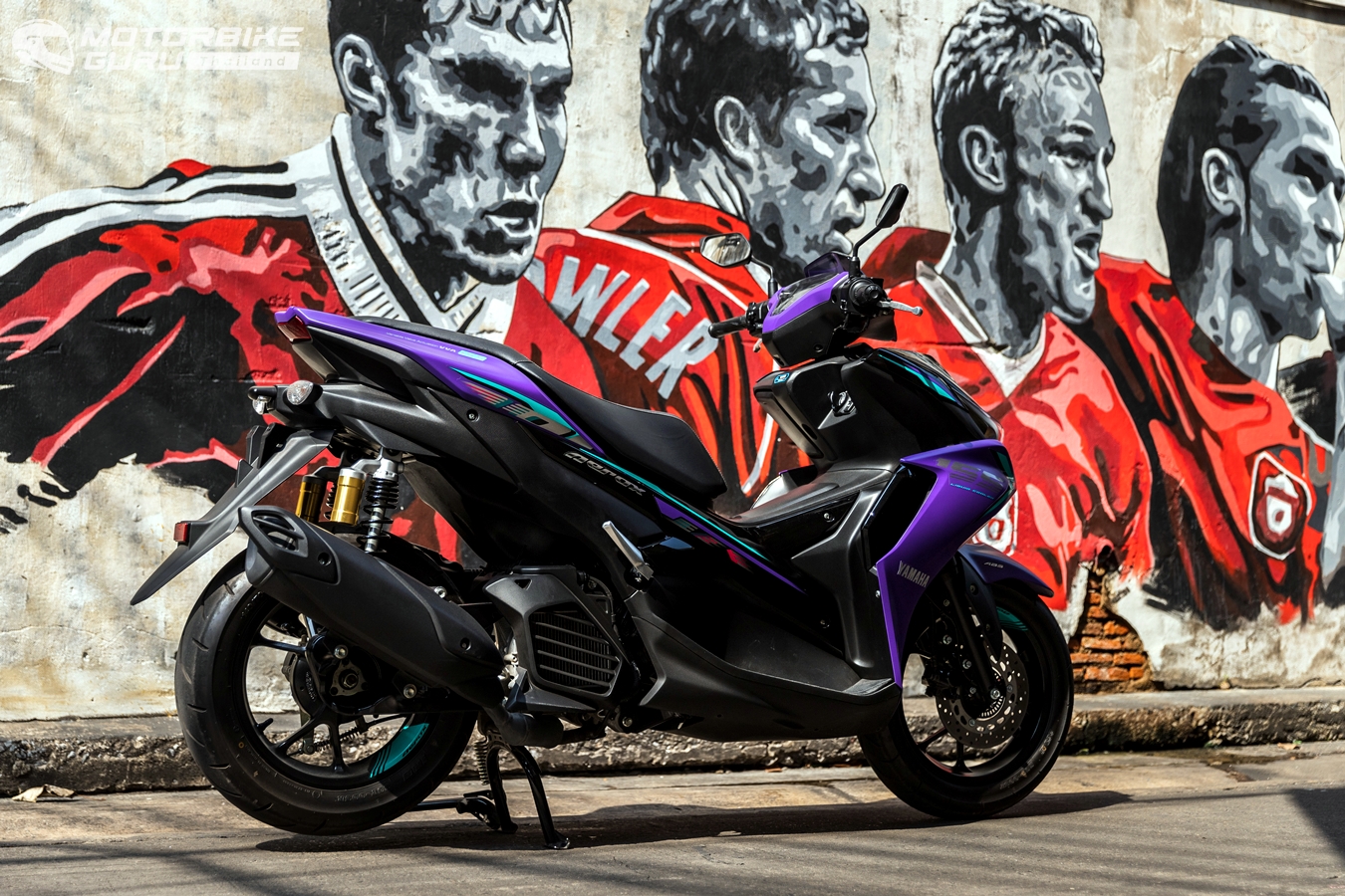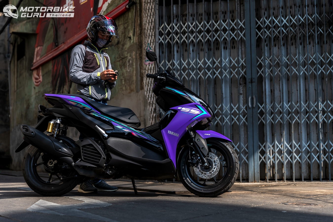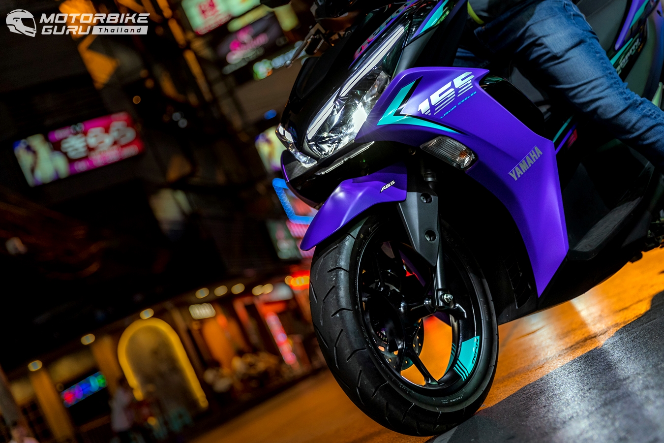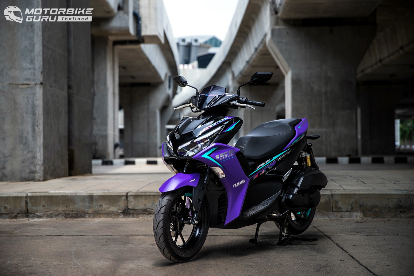 New Yamaha AEROX 2023 มาพร้อม 2 ตัวเลือก ได้แก่ รุ่น ABS Version ราคาแนะนำ 83,500 บาท มาพร้อม สีม่วง-ดำ Deep Purple และสีเทา-น้ำเงิน Dark Blue และ รุ่น