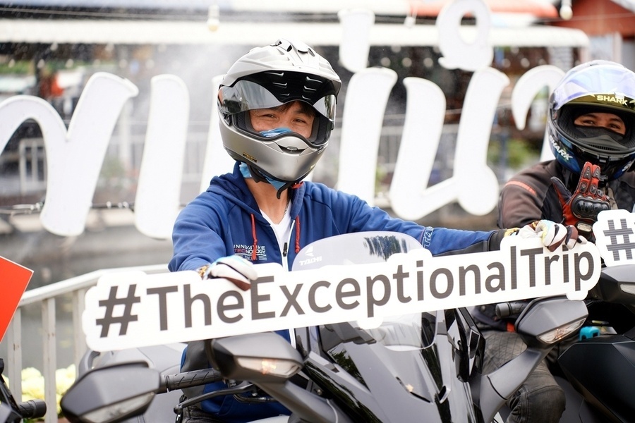 ทริป The Exceptional เริ่มต้นกันที่ ฮอนด้า บิ๊กวิงก์ พระราม 5 จุดนัดพบรวมตัวสมาชิกทั้งหมด โดยแบ่งให้กลุ่ม เอ ขี่ไปก่อน จนถึงร้านแพแม่น้ำเพื่อพักทานกลางวัน และรอให้สมาชิกกลุ่ม บี ทีต้องสลับขี่ไปรอเปลี่ยนกลางทาง ซึ่งเราทีมงานเพจ มอเตอร์ไบค์กูรู เว็บไซต์ เช็คราคา.คอม ได้อยู่ในกลุ่ม บี ช่วงแรกจึงนั่งรถตู้ไปรอเปลี่ยนที่ร้านอาหารกลางวัน หลังจากอิ่มอร่อยกับมื้อกลางวันก็ได้เวลาสัมผัสฮอนด้า Forza 350 ใหม่ที่ใช้ขุมพลัง eSP+ ให้ความแรงกว่า และไหลลื่นกว่าเดิม อีกทั้งทนทาน และประหยัดน้ำมันขึ้น