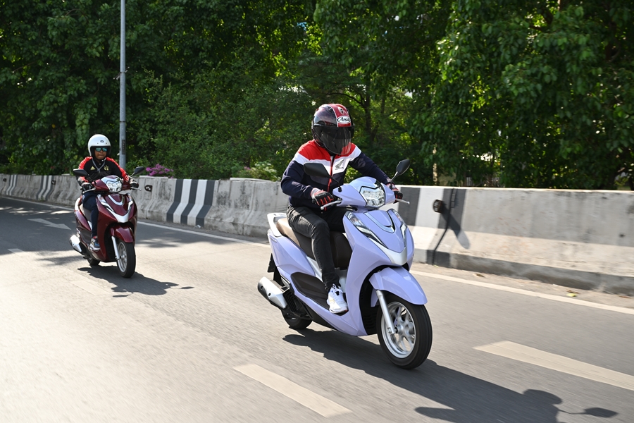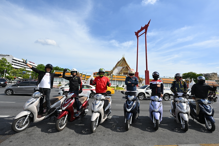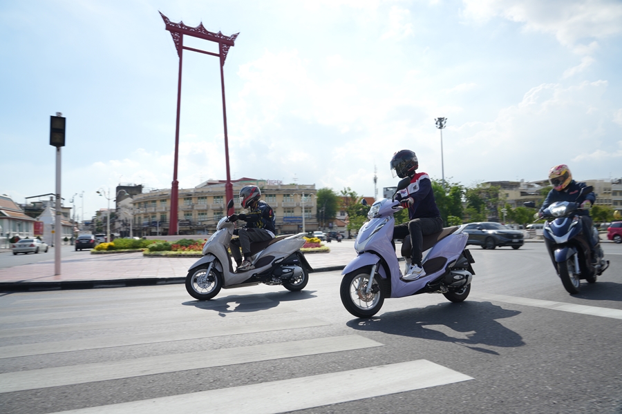ฮอนด้า LEAD125 ใหม่ เอ.ที. รุ่นใหม่ล่าสุด ที่ออกแบบได้ลงตัวอย่างมีสไตล์และเน้นไปที่ความอเนกประสงค์มากที่สุดในคลาส ตอบโจทย์หลากหลายของคนที่เน้นรถใช้งานรองรับการใส่ของ ทำให้ LEAD125 ใหม่ เป็นรถของคนมีของ ที่มียอดสั่งจองมากๆ รุ่นหนึ่ง เรื่องของอรรถประโยชน์ทริปนี้อาจไม่ได้ลองกันมาก แต่ก็ใส่สัมภาระส่วนตัวระหว่างขี่ได้เยอะมาก ส่วนด้านการขับขี่ผู้เขียนลองมาเรียบร้อย โดยเส้นทางเริ่มจากร้าน Scene Bangkok Pâtisserie & Brasserie ที่มีกาแฟกับเบอเกอรี่อร่อย ตั้งอยู่รอบนอกเมืองถนนพรานนก-พุทธมณฑลสาย 4 ขี่ เข้าสู่ใจกลางเมือง ผ่านถนนประชาธิปก สะพานพุทธ เสาชิงช้า นางเลิ้ง ดินแดง พระราม9 รามคำแหง แล้วไปจบที่ศูนย์ฝึกขับขี่ปลอดภัยฮอนด้า กรุงเทพฯ ระยะทางรวมราว 35 กม. ไม่มากแต่ก็รู้เรื่องเลยว่า ฮอนด้า LEAD125 ใหม่ เป็นสกู๊ตเตอร์คลาส 125 ซีซี ที่ให้ความคล่องตัวสูง น้ำหนักเบาขี่ง่าย ประหยัดน้ำมัน เพราะระดับน้ำมันแทบไม่พร่อง เบรกหน้าดิสก์หลังดรัมเอาอยู่เพราะน้ำหนักตัวรถเพียง 114 กก. เหนือสิ่งอื่นใดคือ ค่าตัวที่เป็นราคาแนะนำจากฮอนด้าเพียง 58,500 บาท นับว่าคุ้มค่าที่สุดในชั่วโมงนี้