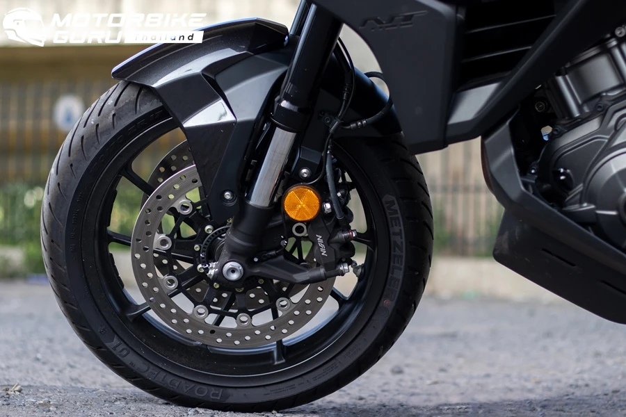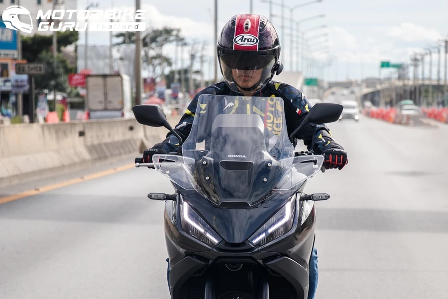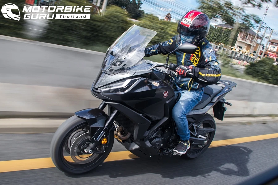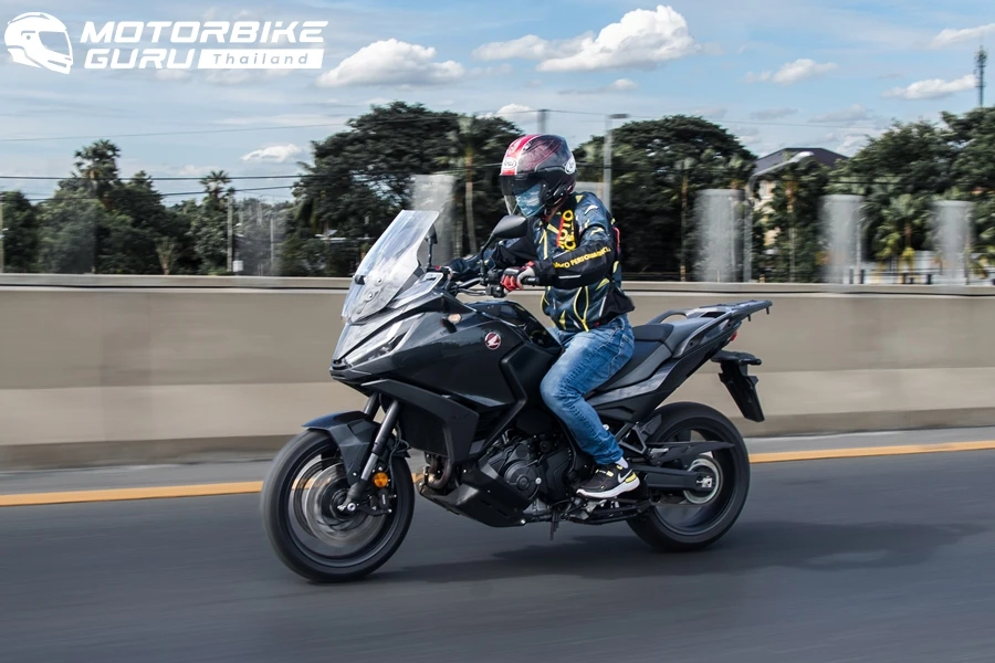 ทีมงานมอเตอร์ไบค์กูรูได้รับรถฮอนด้า NT1100 มาลองขี่ระยะสั้นในและนอกเมือง การขี่ในเมืองเลือกในช่วงดึกที่การจราจรเบาบาง เบาะสูงระดับ 820 มม. นับว่าไม่สูงมากไปจนทำให้ขี่ลำบาก แม้ในเมืองยิ่งเป็นบิ๊กไบค์แอดเวนเจอร์คลาส 1000 ซีซี ด้วย การเลือกใช้โหมด ได้เลือก rain จากที่มี Touring, Urban และ user1-2 แสดงให้เห็นว่ารถออกแบบมาไว้สำหรับเดินทางจริงจัง ซึ่งการตัดต่อระหว่างเกียร์ DCT เมื่อต้องปรับขึ้นลงบ่อยในเมืองก็อาจทำให้การควบคุมคันเร่งต้องหาจังหวะที่พอดีมากขึ้น นอกจากนี้น้ำหนักตัว 248 กก. นับว่าไม่เบาเท่าไหร่ และตัวบอดี้รถที่กว้าง 865 มม. ยาว 2,240 มม. สูง 1,525 มม. ทำให้การขยับจอดหรือเลาะเลี้ยวช่วงความเร็วต่ำไม่สะดวก ก็อย่างที่บอก NT1100 ออกแบบมาเพื่อการเดินทางไกล อย่างไรก็ตามผู้ขี่ยังประทับใจในด้านสมดุลตัวรถในช่วงความเร็วต่ำ ท่าขี่ที่สะดวกสบาย ความสูงของตัวรถที่ช่วยให้ได้มุมมองที่กว้างไกล และขยับผ่านอุปสรรคได้สะดวก จากในเมืองสู่การขี่นอกเมืองในวันต่อมา ผู้เขียนหันมาใช้โหมด Urban สลับกับ Touring พบว่าพลัง 100 แรงม้า จากเครื่องยนต์ 2 สูบเรียงขนาด 1,100 ซีซี ให้การตอบสนองบนเส้นทางเปิดชานเมืองได้อย่างยอดเยี่ยม อัตราเร่งแซงที่ลื่นไหลไปอย่างรวดเร็ว การชะลอเบาเบรกจากความเร็วเกิน 100 กม./ชม. ลงมาจนอยู่ในระยะควบคุม การเข้าออกโค้งความเร็ว และการความนิ่งของตัวรถขณะเปิดคันเร่งแบบมทันทีทันใด ล้วนบ่งบอกถึงตัวตนที่แท้จริงของ NT1100 น่าเสียดายที่ผู้เขียนไม่มีโอกาสได้ขี่แบบลองไรด์ทางไกลระดับ 200 กม. ขึ้นไป ทำให้ไม่ได้ลองฟีเจอร์อื่นๆ อย่างเต็มที่ เช่น ครูซคอนโทรล ฯลฯ อย่างไรก็ตามด้วยราคา 515,000 บาท แลกกับการได้บิ๊กไบค์แอดเวนเจอร์ที่ครบเครื่อง ขี่สบายทางไกล พร้อมเป็นเพื่อนเดินทางคู่ใจ ด้วยเทคโนโลยีล่าสุดจากฮอนด้า นี่คือ ดาวเด่นในปีนี้รุ่นหนึ่งสำหรับใครที่มองหาบิ๊กไบค์ขี่ทางไกล