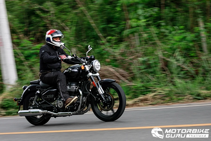 ทริปลองขี่ Royol Enfield Super Meteor พลัง 650 ซีซี บนเส้นทางเขาใหญ่ ในแบบเนินเขาและโค้งมากมาย ในสไตล์ท่องเที่ยว Super Meteor ให้ฟิวลิ่งนุ่มนวลทั้งเครื่องยนต์ที่เดินเรียบ ช่วงล่างปรับได้ลงตัว ท่านั่งขับขี่สบายไม่เมื่อย ด้วยเบาะเว้าลึก วางเท้าบนพื้นได้พอดี