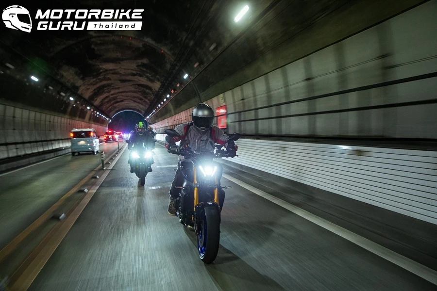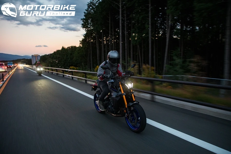 ข้อดีของการขี่บิ๊กไบค์ก็คือ ใช้ทางด่วนได้เหมือนกับรถยนต์ ซึ่งตรงนี้เป็นความพิเศษที่ทางยามาฮ่าจัดให้ นอกจากนี้เรายังสามารถแวะใช้จุดพักทางด่วนได้ สะดวกเรื่องเข้าห้องน้ำและอาหารระหว่างทาง ทำให้ไม่เสียเวลาตอนมื้อกลางวัน ในช่วงบ่ายผู้เขียนสลับมาขี่รุ่น MT-09SP เน็กเก็ตไบค์รุ่นใหญ่ที่ให้พลังสูงจากเครื่องยนต์ครอสเพน 3 สูบ ยิ่งเป็นเวอร์ชัน SP ที่อัพเกรดช่วงล่างมากอย่างดียิ่งทำให้การขี่สนุกและมั่นใจสุดๆ ไฮไลท์วันนี้อยู่ที่การขี่ไปตามเส้นทาง ฮาโกเน่ สกายไลน์ เพื่อไปชมบรรยากาศรอบทะเลสาบฮาโกเน่ที่มองเห็นฟูจิซังได้หลายมุม การได้ขี่ MT-09SP เป็นครั้งแรกของผู้เขียนกับถนนญี่ปุ่นยิ่งทำให้ซึบซับความรู้สึกได้อย่าเต็มที่ โดยจุดหมายปลางวันแรกอยู่ที่แคมปิ้ง รีสอร์ตที่ชื่อว่า ปิก้า ฟูจิยาม่า การขี่ในช่วงครึ่งวันหลังเป็นช่วงเวลาที่ดีและโหดร้ายที่สุด ตัวรถนั้นนับว่าสมบูรณ์แบบทั้งขี่ง่ายและตอบสนองกำลังได้อย่างฉับไว การถ่ายทอดกำลังระหว่างเกียร์ต่อเกียร์สมูธกว่าคลาส 700 ชัดเจน นอกจากนี้ท่านั่งขี่ที่เปลี่ยนไปแบบหลังตรงมากขึ้นยิ่งทำให้เพลิดเพลินไปกับการขี่และมองทิวทัศน์ได้มากขึ้น เมื่อยน้อยลงด้วย แต่ความโหดร้ายเป็นเรื่องของอากาศที่เย็นลงเรื่อยๆ เมื่อเราขี่เข้าใกล้ฟูจิซังพร้อมกับเวลาที่พระอาทิตย์ลับฟ้าเร็วตั้งแต่ก่อนหกโมงเย็น แม้เตรียมแจ็กเกตขี่แบบมีซับในกันหนาว ถุงมือขี่กันหนาวก็ยังรู้สึกสะท้านและทรมานไม่น้อย ถ้าให้แนะนำก็ควรเป็นแจ็คเกตหนังแบบวินเตอร์ อย่างไรก็ตามก็เป็นแค่ช่วงระยะทางไม่ไกลมากราว 60 กม. แต่ก็นานพอที่จะตัองกัดฟันให้ผ่านช่วงเวลาอึดอัดแบบนี้ไปให้ได้ เพราะขี่ให้เร็วขึ้นก็ยิ่งหนาวมากขึ้น ทุกอย่างต้องพอดีกับตัวเอง การเตรียมหมวกที่ไม่มีแว่นกันแดดในตัวมาก็ต้องเลือกใสไว้ก่อน หาแว่นกันแดดใส่ข้างในทีหลัง สำหรับผู้เขียนเลือชิลด์แบบดาร์คสโม๊คมาตั้งใจไว้กันแดดอย่างเดียว ก็เลยยิ่งทำให้เพิ่มความอึดอัดมากยิ่งขึ้น แต่การใช้ชิลด์กับหมวกกันน็อคคุณภาพดีความชัดเจนก็อย่างพึ่งพาได้แม้จะมึดกว่าเดิมก็ตาม