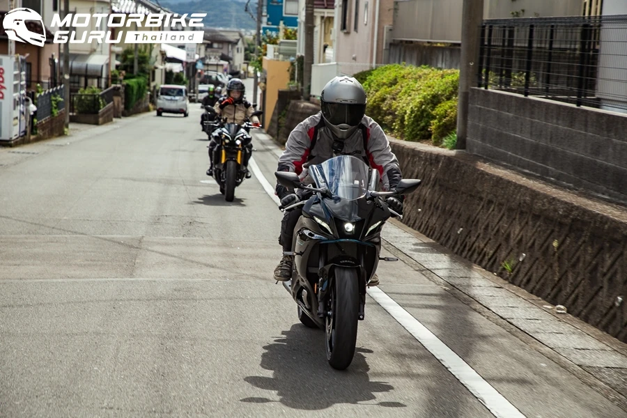ผู้เขียนเป็นตัวแทนจากทีมงานฯ ได้เตรียมความพร้อมชุดและอุปกรณ์เพื่อมาขี่สัมผัสความเร้าใจของบิ๊กไบค์ยามาฮ่าบนถนนญี่ปุ่นเป็นครั้งแรกในชีวิต ซึ่งมีหลากหลายรุ่นให้ได้สลับขี่กัน โดนเริ่มต้นกับสปอร์ตบิ๊กไบค์ยอดนิยม YZF-R7 จากตระกูล R-series ที่ให้ความสปอร์ตที่กำลังพอดีทั้งบนถนนและในแทร็ค งานนี้เดินทางไปรับรถกันที่ ยามาฮ่า เทคนิคเคิ่ล เซนเตอร์ ในคาเคกาวะ ร่วมกับเพื่อนสื่อฯ ที่ขี่รุ่นอื่นๆ คละกัน การขี่ในช่วงแรกเป็นเส้นทางในเมืองที่แม้เป็นถนนไม่กว้างมาก แต่ก็โล่งการจราจรเบาบางตามสไตล์เมืองเล็ก ตัวรถที่คุ้นชินกับการขี่ในเมืองไทยมาหลายครั้งทำให้ไม่ต้องปรับตัวอะไรมาก และการขี่มอเตอร์ไซค์ไม่ว่าที่ไหนในโลกก็ไม่ต้องกังวลเรื่องพวงมาลัยซ้าย-ขวา ยิ่งในญี่ปุ่นขับเลนซ้ายเหมือนไทยยิ่งแทบไม่ต้องปรับความรู้สึกอะไรเลย ตัวรถ R7 ขี่ง่ายไม่ซับซ้อนให้กำลังที่สมดุลควบคุมง่าย การขี่บนถนนสาธารณะและทางด่วนพิเศษของญี่ปุ่นที่มีพื้นผิวเนียนเรียบให้ความรู้สึกที่ดีและมั่นใจมากๆ เส้นทางในวันแรกเป็นการขี่เป็นเน้นจุดจอดสวยๆ รอบภูเขาไฟฟูจิ