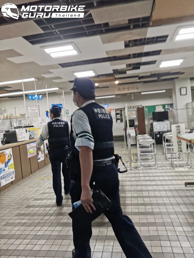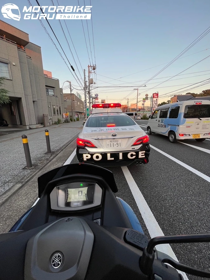 ผู้เขียนขี่ออกจากชายหาดตอน 15.30 น. เจอรถติดของคนมาเที่ยว ดีที่เลือก NMAX เพราะขี่เลาะผ่านสะดวก แต่ก็มาเจอตำรวจญี่ปุ่นจับด้วยความงุนงง และโดนเชิญไปโรงพักด้วยข้อหาไม่หยุดรถตรงจุดให้หยุดซึ่งตรงแยกนั้นไม่มีสัญญานไฟจราจร มีแต่ภาษาญี่ปุ่นบนพื้นถนนให้หยุด ซึ่งผู้เขียนมารู้ภายหลัง ตอนนั้นทำได้แค่ชะลอมองซ้ายขวาไม่มีรถแล้วจึงไป กว่าจะได้ออกจากโรงพักก็ราว 17.05 กูเกิ้ลบอกว่าถึงที่หมายร้านเช่าก็อีก 2 ชม.กว่า การคำนวนค่อนข้างแม่นนำคลาดเคลื่อนตามความเร็วของเราเองซึ่งก็น้อยมาก การทำเวลาเดินทางในญี่ปุ่นเป็นเรื่องยาก บ้านเราก็ด้วยเช่นกันเพราะมีกำหนดความเร็ว แต่ที่นี่แยกไฟแดงเยอะมาก ถ้าผิดรถตำรวจพร้อมตามมาจับทันที