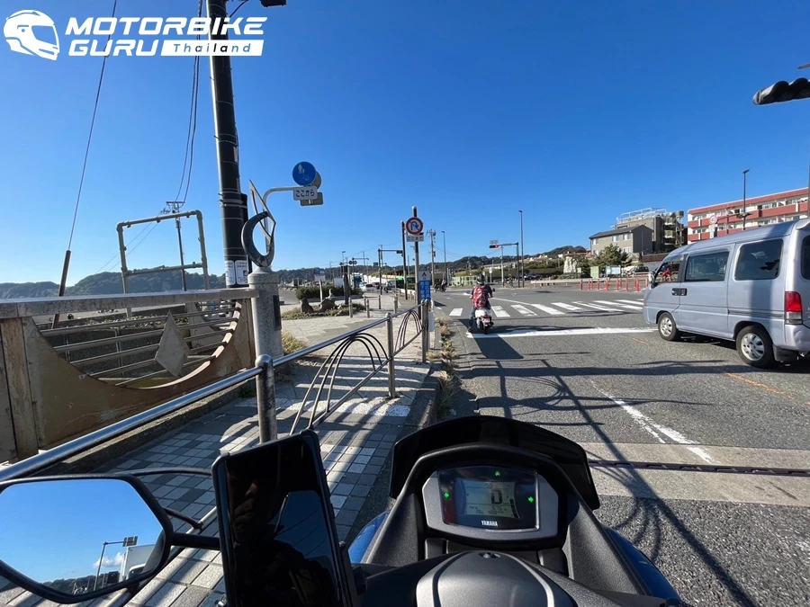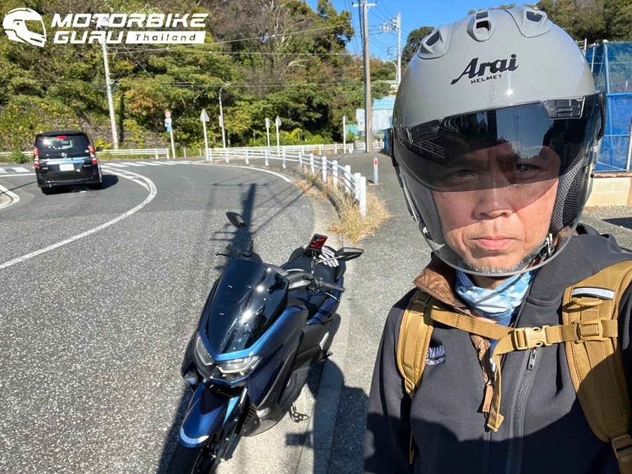 ยามาฮ่า NMAX เป็นรถขี่ง่าย สะดวกกับการควบคุม ผู้เขียนยึดที่จับมือถือไว้กับก้านกระจกมองข้าง ซึ่งเป็นมุมสะดวกที่สุด ทางร้านก็บริการติดให้ด้วย การขี่คนเดียวจากในเมืองโตเกียวช่วงแรกไปตามกูเกิ้ลแมพไม่ยากมาก เพราะเข้าเส้นทางหลักแล้วก็ไปตามทางยาว อาจมีช่วงลอดอุโมงค์สัญญานไฟ และข้ามสะพานยาว ที่ต้องระวังคือ สี่แยกสัญญานไฟจราจรเยอะ นอกจากทำให้เสียเวลาในการเดินทางแล้ว ยังต้องระวังเรื่องกฎจราจรด้วย จากการคำนวนเส้นทางจากเมืองโตเกียวผ่านโยะโกะฮะมะสู่คะมะมุระ กูเกิ้ลบอกใช้เวลา 2 ขั่วโมงครึ่ง ดังนั้นไปกลับ 5 ชั่วโมง และต้องบวกเวลาแวะพักทานอาหาร เข้าห้องน้ำ ถ่ายรูป ฯลฯ