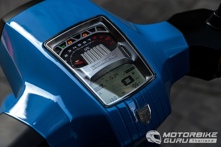 เมื่อถึงซอยจุฬาลงกรณ์เราก็จอดพักเก็บภาพพร้อมพิจารณารายละเอียดของตัวรถอย่างใกล้ชิด สรุปได้เลยว่าชิ้นพาร์ตทุกจุดเกรดดีมีคุณภาพ งานประกอบปราณีต ใส่ใจในการออกแบบทุกรายละเอียด สังเกตจากมีคำว่า LAMBRETTA อยู่เกือบทุกชิ้นส่วนบนตัวรถ