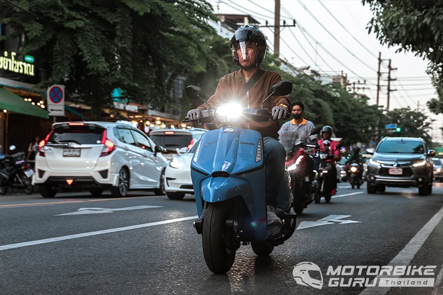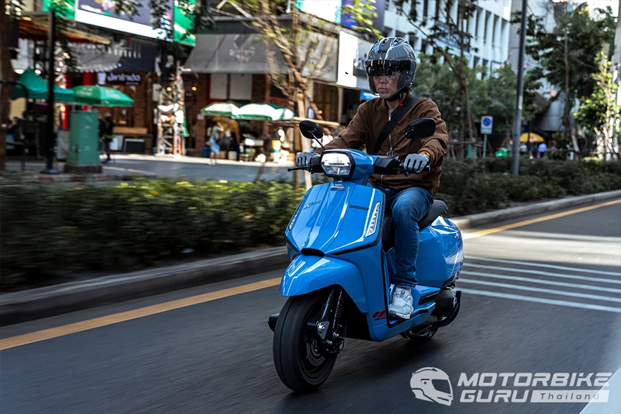 ทีมงานเพจ Motorbike Guru และเว็บไซต์ Checkraka ได้ลองขี่ทดสอบ New Lambretta X200 ในรูปแบบการใช้งานในเมือง เริ่มจากรับตัวรถสีฟ้า คลาวดี้บลู ที่เห็นตัวจริงแล้วเนียนตา เรียบหรูได้ใจตั้งแต่แรกเห็น บอดี้เดิมก็นับว่าลงตัวดีอยู่แล้ว พอได้โทนสีสไตล์เพลย์ฟูลแบบนี้ยิ่งทำให้ตัวรถโดดเด่นและดูแตกต่างจากรุ่นพี่ X300 ชัดเจน