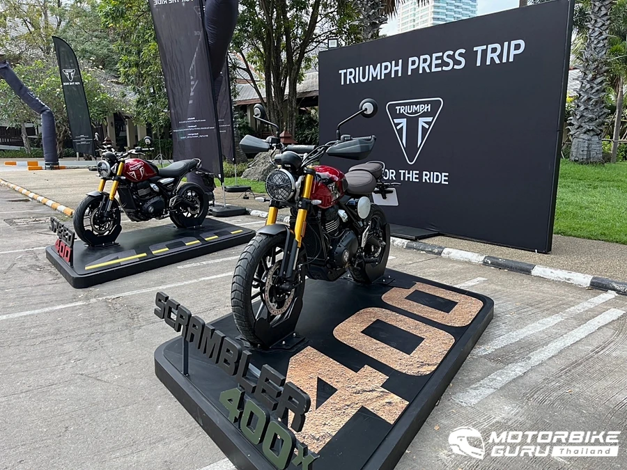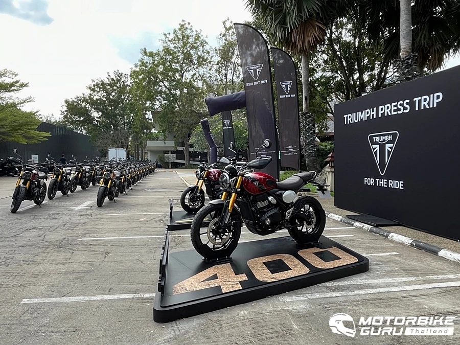 Triumph ทั้ง 2 รุ่นนี้เป็นรถที่ถูกพัฒนาขึ้นใหม่ทั้งโครงสร้างตัวรถและเครื่องยนต์ กับการทดสอบขับขี่ระยะรวม 130 กม. บอกเลยว่าขี่มัน แรงบิดดีมาก Top Speed เกินต้าน รถผู้ดีอังกฤษที่ราคาคุ้มสุดในคลาส 400 ซีซี Speed 400 ราคา 157,900 บาท และ Scrambler 400X ราคา 179,900 บาท ในทริปนี้เป็นการขับขี่ทั้ง 2 รุ่น สลับรถและสื่อรอบเช้า-บ่าย จากจุดเริ่มต้น Ravidra beach resort & spa พัทยา ใช้เส้นทางสวนนงนุช-เขาชีจรรย์-พลูตาหลวง และวนเพื่อถ่ายรูปหลาบรอบ รวมระยะทางกว่า 130 กม.