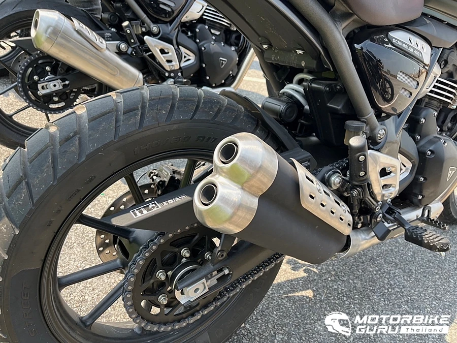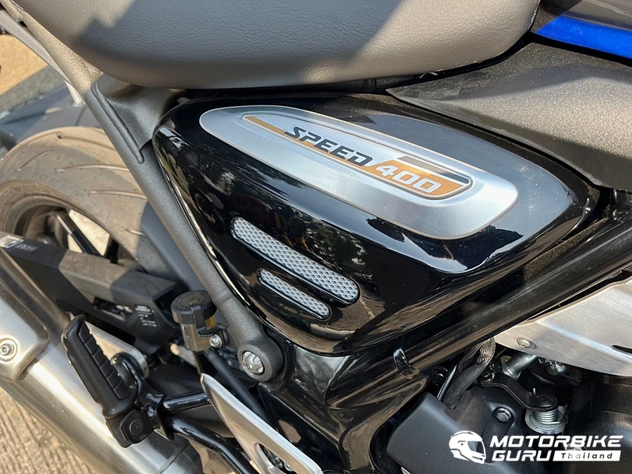 ความแตกต่างที่ลงตัวกับรถทั้ง 2 รุ่น 2 คาแร็คเตอร์เริ่มที่ Speed 400 เน้นการขับขี่บนถนนเรียบแบบ On Road ขับขี่สบายท่านั่งหลังเกือบตรงสไตล์แบบรถเน็กเก็ต ความสูงกำลังดี กระจกมองข้างปลายแฮนด์ติดตั้งจากโรงงาน มีการปรับจูนให้มีกำลงที่ดีด้วยการใช้สเตอร์โซ่หน้า (จากชุดเกียร์) ขนาด 14 ฟัน เพื่อเน้นรอบและแรงบิดที่ไหล่ลื่นให้เหมาะกับการขับขี่แบบเรสซิ่ง พร้อมปลายท่อเสียแบบ 1 ช่องขนาดใหญ่ ได้ทั้งต้นจัดปลายไหล