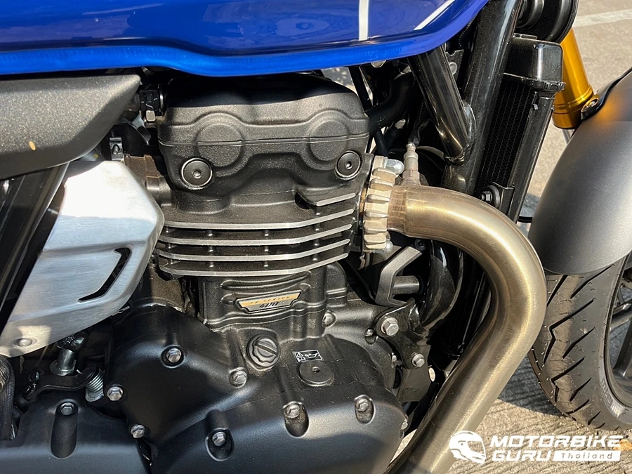 สำหรับทรงคบาสสิก 1 สูบ 400 ซีซี ส่วนใหญ่จะเน้นแรงบิดดีที่รอบต่ำและกลาง แต่ในไทรอัมพ์ ทั้ง 2 รุ่นนี้กลับมีความเร็วปลายที่ดีไม่มีแผ่ว กำลังของเครื่องยนต์ที่บิดตามมือ แม้จะใช้ความต่ำ ๆ ราว 70 กม. / ชม. ในเกียร์ 6 แต่เมื่อเปิดคันเร่งกลับมีเรี่ยวแรงดี อาการรอรอบน้อยมากและเริ่มให้อัตราเร่งที่ดี