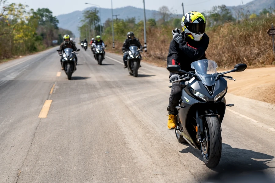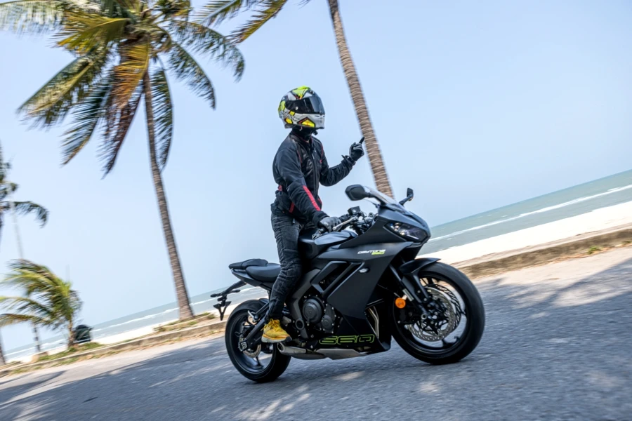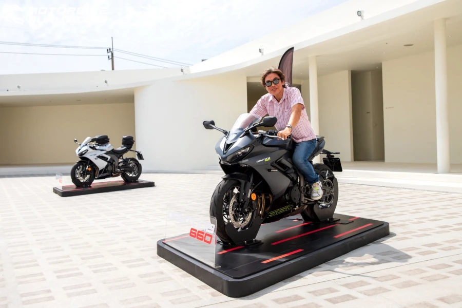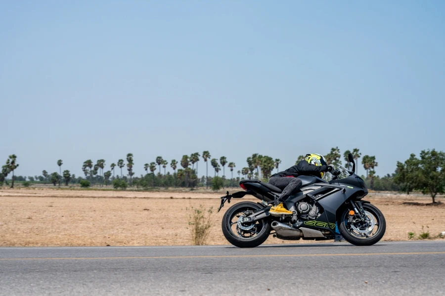 นี่คือ การลองครั้งแรกกับ ไทรอัมพ์ เดย์โทน่า 660 (Daytona 660) สปอร์ตบิ๊กไบค์ขนาดกลางใหม่เพื่อผู้ขี่เจนฯใหม่ แรงด้วยขุมพลังเครื่องยนต์สามสูบใหม่ล่าสุดขนาด 660 ซีซี กำลังสูงสุด 95 แรงม้า ที่ 11,250 รอบต่อนาที แรงบิดสูงสุด 69 นิวตันเมตร ที่ 8,250 รอบต่อนาที พร้อมชุดเกียร์ 6 สปีด ลิ้นแยกอิสระ 3 พอร์ตไม่เหมือนในรุ่น Trident เสริมด้วยท่อไอเสียใหม่ แบบ 3 ออก 1 ให้เสียงสไตล์สปอร์ตทรงพลัง นอกจากนี้สเปคโดยรวมพรีเมียมแน่นๆ เริ่มจากโช้คหัวกลับลูกสูบใหญ่ของ Showa ขนาด 41 มม. และโช้คหลัง RSU โมโนช็อคของ Showa รองรับการปรับตั้งค่าพรีโหลด เบรกเรเดียล 4 ลูกสูบพร้อมดิสก์เบรกคู่ขนาด 310 มม. พร้อมสายเบรกแบบถัก รัดด้วยยาง Michelin Power 6 ใหม่ล่าสุด มั่นใจทั้งบนถนนเปียกและแห้ง เทคโนโลยีและความปลอดภัยอย่างคันเร่งไฟฟ้าให้การตอบสนองที่คมและแม่นยำพร้อม 3 โหมดการขี่ ได้แก่ Sport, Road และ Rain แตกต่างด้วยการตอบสนองของลิ้นปีกผีเสื้อ ไปจนถึงการตั้งค่าระบบควบคุมการยึดเกาะถนนให้เหมาะสมกับโหมด การขี่ทดสอบกับเส้นทางหลวงและถนนสายรองในพื้นที่ชะอำ-หัวหินได้ข้อสรุปตามนี้