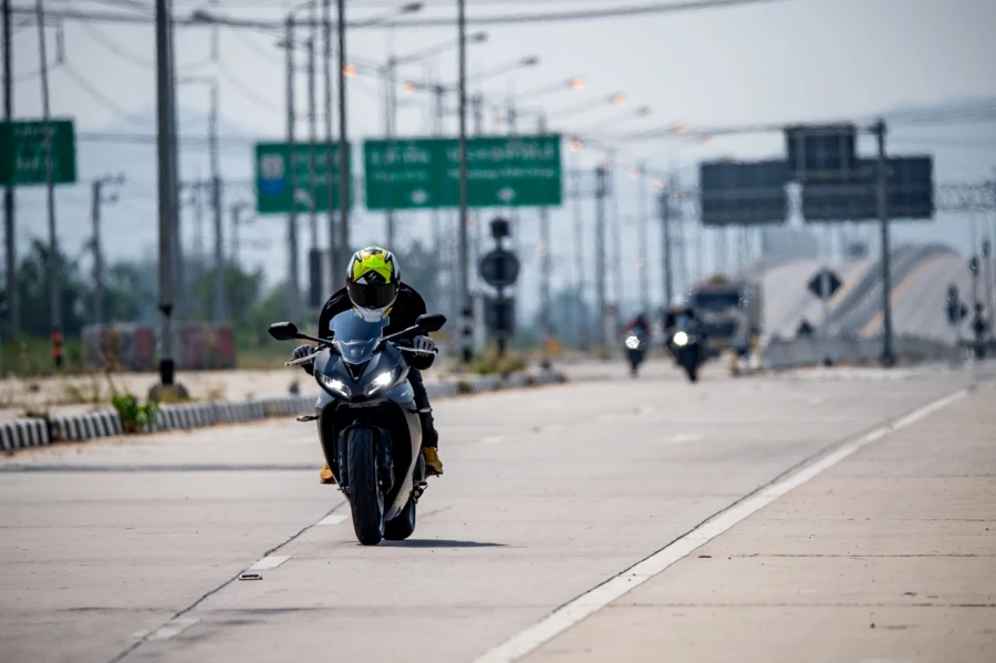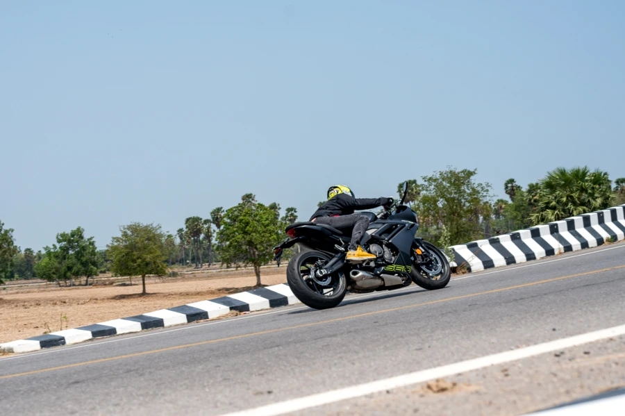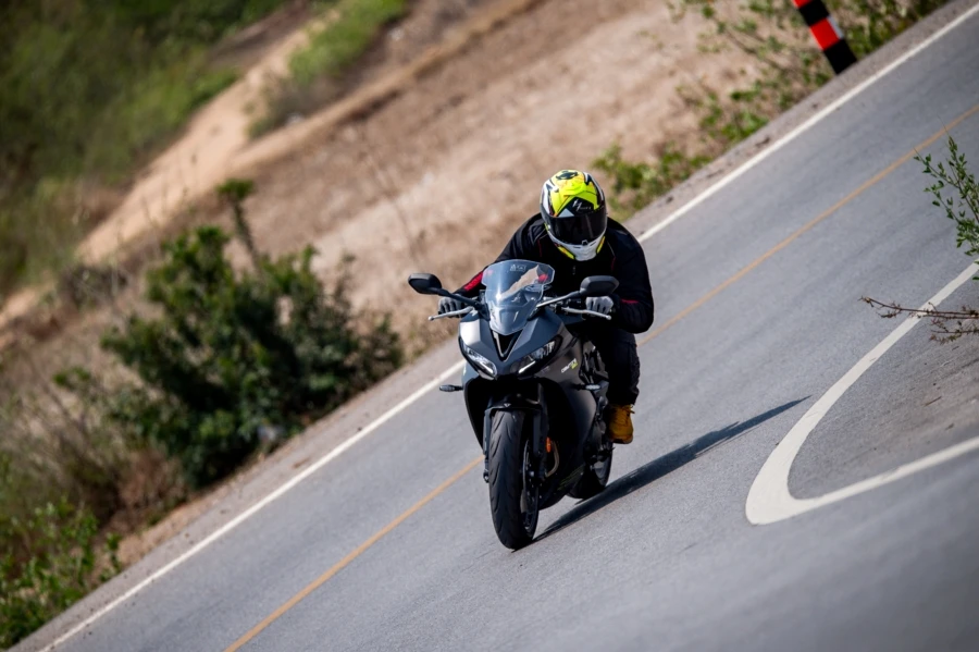 การขับทดสอบแน่นอนว่าเส้นทางเป็นแบบออนโร้ด 100% นอกจากขี่ผ่านตัวเมือง ตลาดย่านชะอำ-หังหินที่แสนวุ่นวายแล้วยังได้ขี่บนถนนเส้นใหม่ที่โล่งและตรงยาว ตอบโจทย์ด้านสมรรถนะของตัวรถได้อย่างเต็มที่ นอกจากนี้ยังได้ผ่านถนนสายรองที่คดเคี้ยวและมีโค้งความเร็วให้ได้ลองเข้ากัน แม้เป็นถนนสาธารณะ ทางสัญจรที่มักมีเศษดินและฝุ่นจับพื้นผิว แต่แทร็คชันในการเข้าโค้งจัดว่าเนียนและไว้ใจได้ดีทีเดัยว ตัวรถให้ท่านั่งที่สุดคอมฟอร์ต ผ่านระยะ 50 กม. แรกยังไม่รู้สึกถึงความเมื่อยล้า นับเป็นสปอร์คบิ๊กไบค์ขนาดกลางที่ออกแบบเพื่อการใช้งานแบบสปอร์ตทัวร์ริ่งได้ดี นอกจากนี้ยังประทับใจกับระบบช่วงล่างของตัวรถที่สอดรับการทำงาน รับมือกับถนนเมืงไทยได้ดี ทำให้ไม่เครียด แล้วแม้ใช้ความเร็วปานกลาง-สูงก็ยังให้ความนิ่งที่น่าพอใจ ตัวรถไม่หนักมาก การเปลี่ยนไลน์ และเลนตอบสนองได้อย่างทันใจ และเมื่อสิ้นสุดทริปด้วยระยะทางเกือบ 90 กม. ตัวเลขอัตราสิ้นเปลืองบนหน้าจอข้อมูลเรือนไมล์อยู่ที่ 22 กม./ล.