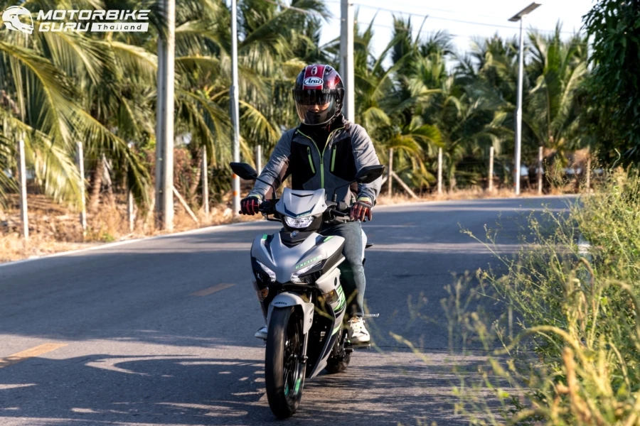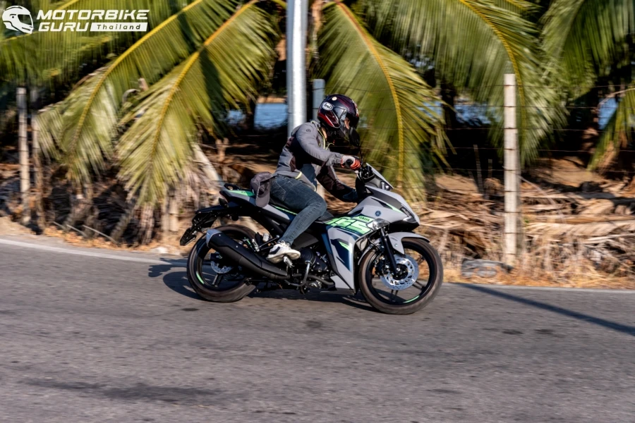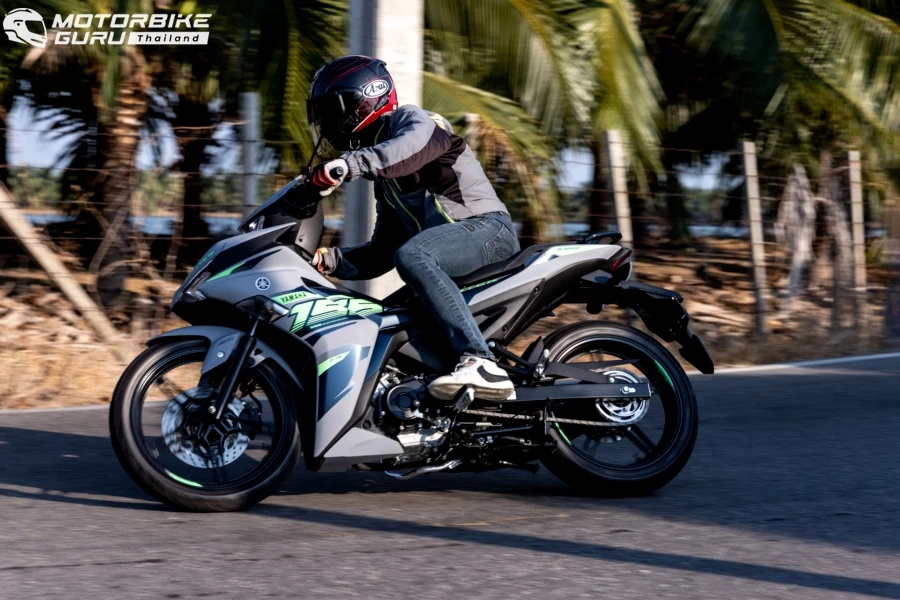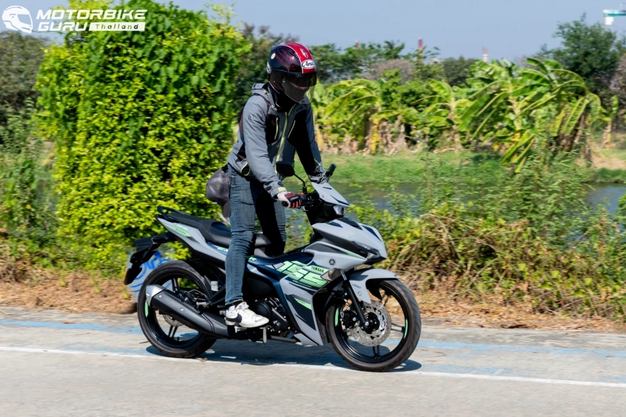 การกลับมาขี่ ยามาฮ่า EXCITER 155 ใหม่ 2024 แม้ทรวดทรงและมิติตัวรถจะไม่ต่างไปจากเดิมแต่ด้วยสีสันใหม่ โดยเฉพาะเทา-น้ำเงิน นับว่าให้ความรู้สึกสปอร์ตทันสมัยมากขึ้น น้ำหนักตัวที่ 123 กก. ก็ให้ความสะดวกที่สุดในการใช้งานขยับ จับ เข็น ทำคนเดียวคล่องตัว ขึ้นคร่อมเบาะที่สูง 795 มม. ก็ยังวางเท้าได้สบายเมื่อชะลอหยุด หน้าจอเรือนไมล์ดิจิตอล มัลติฟังชันมองเห็นชัดเจน เซ็ตทริป บอกอัตราสิ้นเปลือง ความเร็วเฉลี่ยครบถ้วน การขี่ครั้งนี้กับเส้นทางไม่ไกลมากราว 45 กม. เริ่มจากบริษัท ไทยยามาฮ่ามอเตอร์ จำกัด ออกสู่ถนนใหญ่แล้วเลี้ยวใช้ถนนสายรองในจังหวัดสมุทรปราการ ผ่านคาเฟ่ สวน บ่อต่อปลา ฯลฯ เสมือนการขี่เที่ยวชานเมืองในวันเดียวก็พบว่า ตัวรถขี่ง่ายเร่งได้ดีเหมือนเดิมด้วยพลังเครื่องยนต์ 155 ซีซี พร้อมวาล์วแปรผัน เกียร์ 6 สปีด และสบายมือกับระบบ assist & slipper คลัตช์ ที่ลดภาระตอนบีบก้านคลัตช์และช่วยลดแรงกระชากเวลาลดเกียร์กระทันหันในหลายจังหวะ ด้วยเส้นทางที่คดเคี้ยว ยามาฮ่า EXCITER 155 ให้การควบคุมที่คล่องตัว เข้า-ออกโค้งได้รวดเร็วขี่สนุกจริงๆ มั่นใจมากยิ่งขึ้นด้วยระบบเบรก ABS ด้านหน้าเพื่อจังหวะที่หยุดกระทันหันบนผิวถนนที่ลื่นซึ่งถนนบ้านเรามีเสมอไม่ว่าน้ำ ทราย ดิน พอถึงจังหวะที่ต้องหยุดพักเข้าคาเฟ่ก็สบายไปอีกกับระบบกุญแจรีโมทอัจฉริยะ ใครที่เคยใช้ยามาฮ่ารุ่นที่มีระบบฯ นี้คงคุ้นเคยกันดีว่าสะดวกแค่ไหน นอกจากนี้ยังมีช่องเสียบต่อชาร์จแบตเตอรี่ให้มาด้วย แค่พวกหัวต่อ USB ติดไว้กับพอร์ตก็สามารถเอาสายชาร์จเชื่อมต่อกับสมาร์ทโฟนได้ จุดนี้ดีสำหรับสายโซเชี่ยลที่ใช้สมาร์ทโฟนอยู่ตลอด จะได้ช่วยชะลอระดับแบตเตอรี่ได้ เมื่อขี่กลับมาถึงไทยยามาฮ่ามอเตอร์ ได้ตัวเลขอัตราสิ้นเปลืองบนหน้าจออยู่ที่ 2.1 ลิตร/100 กม. หรือ 47.6 กม./ลิตร นับว่าเป็นสปอร์ตโมเปดที่ขี่สนุกสไตล์สปอร์ต แล้วยังให้ความประหยัดอีกด้วย