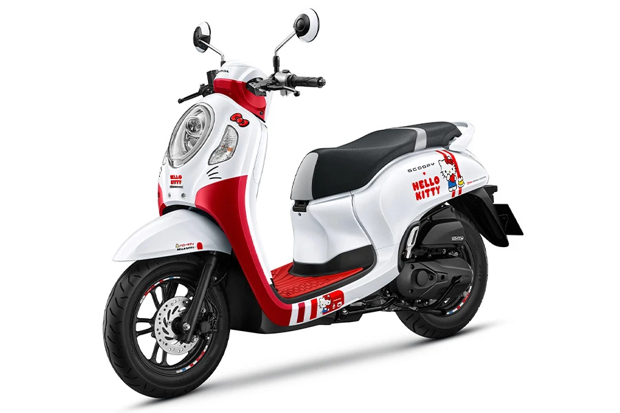 Honda Scoopy Hello Kitty Limited Edition มาพร้อมคอนเซปต์ Hello Iconic Friend สองความสุด ที่ไม่หยุดคิวท์ โดยนำเอาคาแรกเตอร์สุดน่ารักตลอดกาลอย่าง Hello Kitty มาคอลแลปกับมอเตอร์ไซค์สุดไอคอนิกอย่าง Honda Scoopy ความพิเศษเริ่มต้นด้วยเฉดสีแดงลงบนตัวรถสีขาว ผสานความน่ารักที่ลงตัวด้วยโบว์สุดคาวาอี้ของ Hello Kitty ที่เพิ่มความโดดเด่นด้วย 3D Emblem พร้อมทั้งเสริมความพิเศษด้วยโลโก้ฉลองครบรอบ 50 ปี พร้อมระบุ Serial Number เสริมความลิมิเต็ดให้กับเหล่าสาวก Hello Kitty อีกด้วย ผลิตและวางจำหน่ายเพียง 2,000 คันเท่านั้น