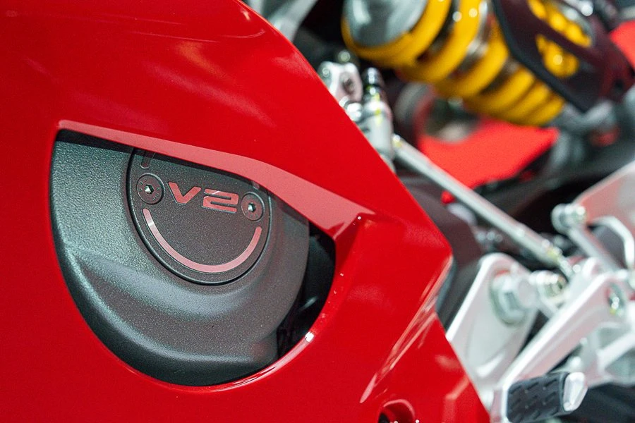 โดยความพิเศษของรุ่น V2S จะมาพร้อมแบตเตอรี่ลิเธียมไอออน, โหมด Power Launch และ Pit Limiter พร้อมที่นั่งแบบเบาะเดี่ยว มาพร้อมขุมพลังใหม่ เครื่องยนต์ V2 บล็อกใหม่ แบบ V-Twin 90 องศา ที่เบาที่สุดเท่าที่ Ducati เคยผลิตมา ซึ่งมีน้ำหนักเพียง 54.4 กก. พร้อมขนาด 890 ซีซี ให้พละกำลังสูงสุด 120 แรงม้า ที่ 10,750 รอบต่อนาที และแรงบิด 93.3 นิวตันเมตร ที่ 8,250 รอบต่อนาที ให้สมรรถนะที่เต็มเปี่ยมทุกจังหวะการเร่ง และยังถูกออกแบบให้ทนทาน ช่วยยืดระยะการบำรุงรักษา (Maintenance Service) ให้นานยิ่งกว่าเดิม Oil Service ทุกๆ 15,000 กม. และ Valve Clearance ทุกๆ 30,000 กม. พร้อมมอบประสบการณ์การขับขี่ให้ผู้ใช้งานได้สบายยิ่งกว่าที่เคย และที่โดดเด่นไปกว่านั้น ครั้งนี้ Panigale V2 มีการใช้เฟรมแบบ Monocoque พร้อมเครื่องยนต์ที่เป็นส่วนหนึ่งของโครงสร้างหลัก