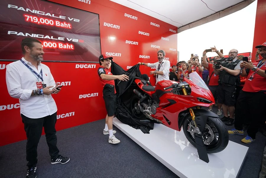 ดูคาติ ประเทศไทย ประกาศความพร้อม เผยโฉม All-New Panigale V2 รุ่นใหม่ ที่ได้รับการออกแบบและพัฒนาใหม่หมด เพื่อมอบประสบการณ์การการขับขี่ที่ยอดเยี่ยมทั้งบนถนนและในสนามแข่ง ด้วยดีไซน์ที่ได้รับแรงบันดาลใจจากรุ่นพี่อย่าง Panigale V4 เริ่มจากไฟหน้าแบบ Daytime Running Light (DRL) รูปลักษณ์ที่ลงตัว ส่วนด้านหลังมีไฟท้ายที่เป็นดีไซน์อันโฉบเฉียวเหมือน Panigale V4 พร้อมเครื่องยนต์ V2 ที่ได้รับการพัฒนาให้ทรงพลังและน้ำหนักเบาที่สุดในรุ่น พร้อมแคมเปญพิเศษ รับฟรีประกันภัยชั้น 1 (เงื่อนไขเป็นไปตามที่บริษัทกำหนด)