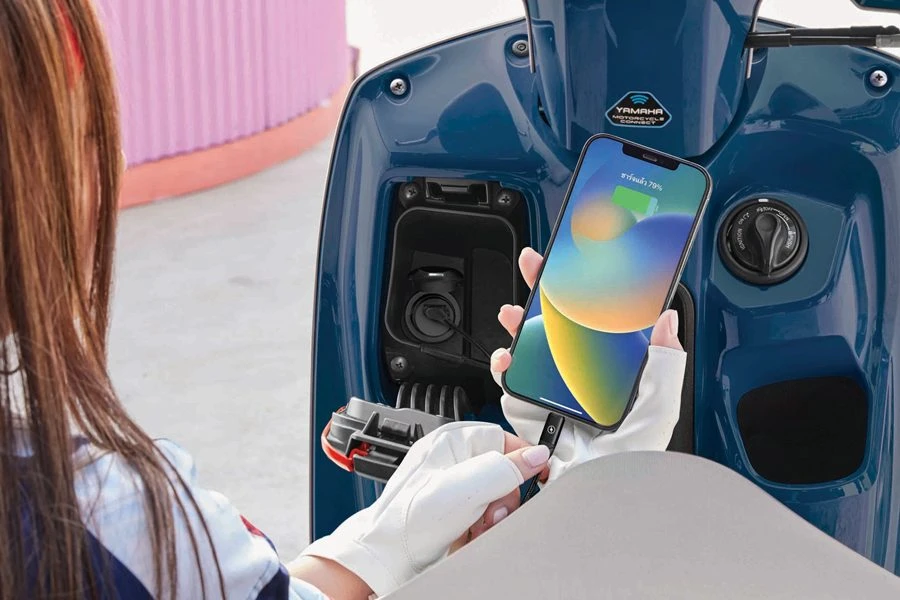 USB Type-A Mobile Charging พอร์ต USB Type-A สำหรับชาร์จมือถือ พร้อมลุยทุกทริปแบบไร้ขีดจำกัด ด้วยช่องเก็บของด้านหน้า และไม่ต้องกลัวแบตหมดกลางทาง สามารถฟังเพลงหรือคุยกับเพื่อนก็สนุกแบบไม่มีสะดุด ขี่ไปได้ทุกทางแบบมีไฟ!