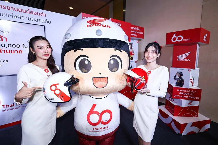 เนื่องในโอกาสพิเศษครบรอบ 60 ปี นี้ ไทยฮอนด้าได้จัดตั้ง โครงการบริจาคหมวกกันน็อก จำนวน 60,000 ใบ มูลค่า 60 ล้านบาท จัดขึ้นภายใต้แนวคิด 60 ปี ไทยฮอนด้า ขับขี่ปลอดภัย เพื่อสังคมไทยที่ยั่งยืน โดยร่วมมือกับหน่วยงานภาครัฐ สถาบันการศึกษา เราจะส่งมอบหมวกกันน็อก 77 จังหวัดทั่วประเทศ พร้อมเดินหน้าเคียงข้างสังคมไทย ด้วยความมุ่งมั่นในการรณรงค์เรื่องความปลอดภัย และสร้างความตระหนักรู้ให้กับคนไทยทุกคน เพื่อร่วมกันขับเคลื่อนสังคมไทยให้ปลอดภัย และก้าวสู่เป้าหมายของการเป็นสังคมที่อุบัติเหตุเป็นศูนย์