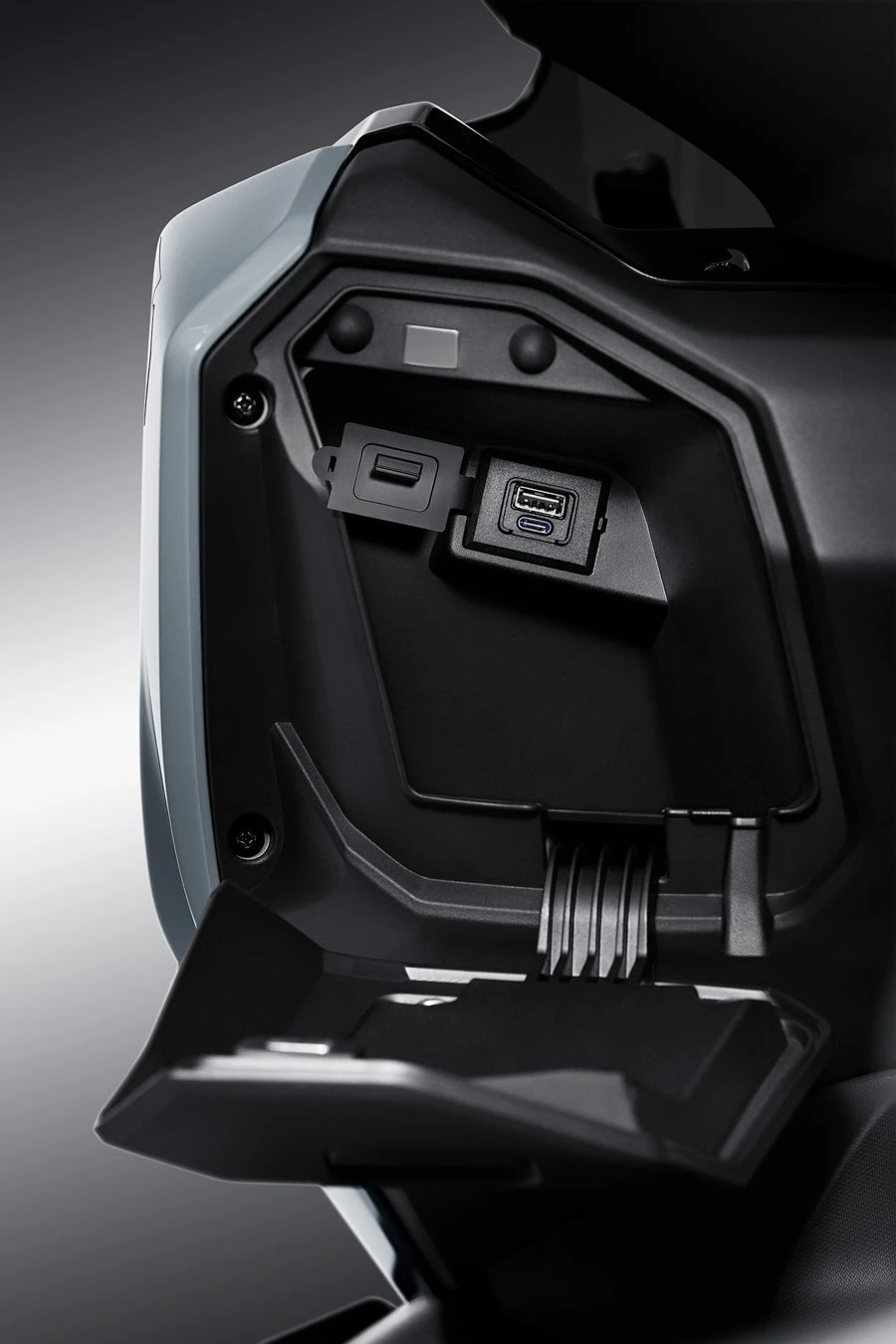 พร้อมช่องชาร์จแบบพอร์ตคู่ ทั้ง USB-A และ USB-C ที่อยู่บริเวณช่องเก็บของด้านซ้าย อีกทั้งยังสะดวกและปลอดภัยในการใช้งาน ด้วยกุญแจแบบ Smart Key (มาตรฐาน IP67) ทนต่อน้ำและฝุ่น พร้อมฟังก์ชันกันขโมยในตัว