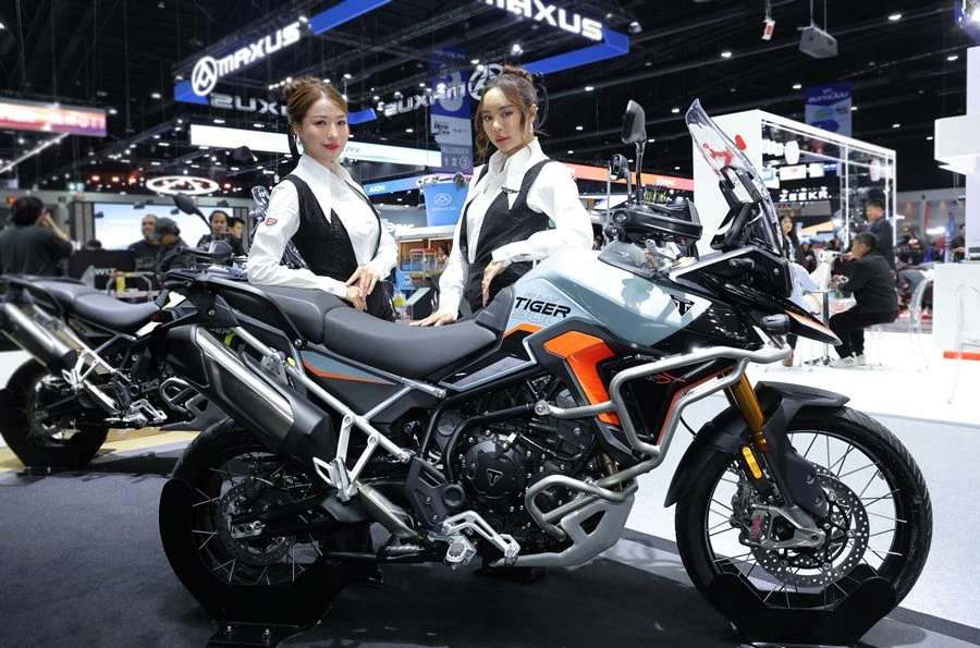 ปิดท้ายด้วย Tiger 900 Alpine Edition ที่พัฒนาบนพื้นฐานของรุ่น Tiger 900 GT Pro ที่เน้นการขี่บนถนน มาพร้อมเทคโนโลยีที่ตอบโจทย์ผู้ขี่ ขณะที่ Tiger 900 Desert Edition พัฒนาต่อยอดจากรุ่น Tiger 900 Rally Pro ซึ่งเป็นรถจักรยานยนต์ระดับแนวหน้าในกลุ่มรถจักรยานยนต์ระดับเดียวกัน ออกแบบมาเพื่อเน้นย้ำถึงความสามารถในการขับขี่แบบออฟโรดอันเลื่องชื่อ ซึ่งทั้ง 2 รุ่น มาพร้อมเครื่องยนต์สามสูบอันเป็นเอกลักษณ์ของไทรอัมพ์ พร้อมเพลาข้อเหวี่ยงแบบ T-plane ขับเคลื่อนด้วยเครื่องยนต์สามสูบ 888 ซีซี ให้พละกำลัง 108 แรงม้า ที่ 9,500 รอบต่อนาที และแรงบิด 90 นิวตันเมตร ที่ 6,850 รอบต่อนาที การส่งกำลังที่ตอบสนองฉับไว ประสิทธิภาพเครื่องยนต์ที่ยอดเยี่ยม และเป็นไปตามมาตรฐาน Euro 5+ ออกแบบมาเพื่อความแข็งแกร่ง การควบคุม และความทนทาน ทั้งสองรุ่นมีสวิงอาร์มหล่ออะลูมิเนียมสองด้านเพื่อความเสถียรและความแม่นยำ พร้อมระบบเบรกประสิทธิภาพสูงจาก Brembo ให้แรงหยุดเหนือชั้น ขณะที่ชุดแฮนด์มีแดมเปอร์ช่วยเพิ่มความสะดวกสบายในการขี่ระยะไกล โดยในรุ่น Desert Edition ยังมาพร้อมกับล้อซี่ลวดและยางแบบไม่มียางใน นอกจากนี้ทั้งสองรุ่นยังมี Triumph Shift Assist เพื่อการเปลี่ยนเกียร์ที่ราบรื่น และแผงหน้าปัดสี TFT ขนาด 7 นิ้ว พร้อมระบบเชื่อมต่อ MyTriumph เพื่อข้อมูลที่เข้าใจง่ายและชัดเจน พร้อมโหมดการขับขี่ที่หลากหลาย โดยรุ่น Alpine มาพร้อมโหมดการขับขี่ 5 โหมด และ รุ่น Desert 6 โหมด โดยเพิ่มโหมด Off-Road Pro เพื่อการบังคับควบคุมบนทุกสภาพถนนขั้นสูง นอกจากนี้ทั้งสองรุ่นยังมีตัวเลือกให้อัปเกรดเป็นเบาะนั่งแบบปรับอุณหภูมิหรือเบาะนั่งแบบต่ำ รวมถึงสามารถติดตั้งท่อเก็บเสียงพรีเมียม Akrapovic เป็นอุปกรณ์เสริมได้อีกด้วย