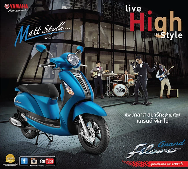 บริษัท ไทยยามาฮ่ามอเตอร์ จำกัด เปิดตัว ยามาฮ่า แกรนด์ ฟีลาโน่ ที่เพิ่มความสมาร์ทยิ่งขึ้นด้วย สีใหม่ "Matt Style" สีด้านโดนใจ ทั้งสีน้ำเงิน (Matt Blue Metallic) และ สีน้ำตาล-ดำ (Matt Titan) ให้ชีวิตมีคลาส สมาร์ทอย่างมีสไตล์ พร้อม Smart Customized แต่งสมาร์ทในสไตล์คุณ ด้วยชุดแต่งพิเศษดีไซน์เฉพาะ ยามาฮ่า แกรนด์ ฟีลาโน่ หาซื้อได้แล้ววันนี้ที่ Yamaha Square และร้านผู้จำหน่ายรถจักรยานยนต์ยามาฮ่าทั่วประเทศ