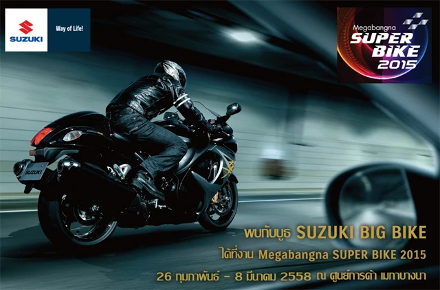 บริษัท ไทยซูซูกิมอเตอร์ จำกัด นำทัพบิ๊กไบค์หลากหลายรุ่น ร่วมงาน Megabangna Super Bike 2015 ที่สุดของมหกรรมมอเตอร์ไซค์ครั้งยิ่งใหญ่แห่งปี ภายใต้แนวคิด ไบค์โร้ด แอนด์ แฟชั่นสตรีท