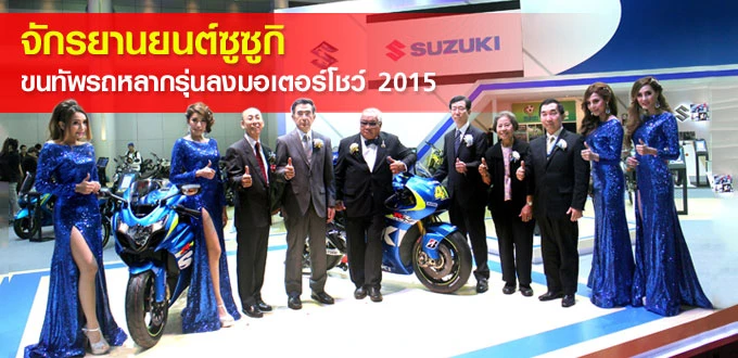 ซูซูกิ ในฐานะผู้ผลิตรถจักรยานยนต์แบรนด์ชั้นนำระดับโลก จะนำคุณสู่สุดยอดนวัตกรรมใหม่ๆ ที่มาพร้อมเทคโนโลยีขั้นสูงของรถจักรยานยนต์ระดับโลก สามารถตอบสนองทุกความต้องการของผู้บริโภคได้เป็นอย่างดีได้เปิดตัวรถแข่งระดับโลกภายในงานมอเตอร์โชว์ 2015