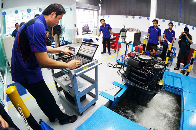 ศูนย์บริการเครื่องเรือยนต์ยามาฮ่าแห่งนี้ ถือเป็นศูนย์บริการฯ ที่มีมาตรฐานการให้บริการเกี่ยวกับธุรกิจมารีนโดยเฉพาะ โดยช่างของศูนย์บริการฯ จะได้รับการฝึกอบรม ตามหลักสูตร YTA (Yamaha Technical Academy) และมีผู้ชำนาญการจากยามาฮ่าประเทศญี่ปุ่นมาประจำการอยู่ที่นี่ด้วย เพื่อเป็นที่ปรึกษา และคอยฝึกอบรมให้ดำเนินการตามมาตรฐาน และยังเป็นที่ปรึกษาทางด้านเทคนิคด้วย โดยมีความพร้อมทางด้านอุปกรณ์และเครื่องมือต่างๆ เครื่องมือพิเศษ บ่อทดสอบเครื่องเรือยนต์พร้อมเครื่องมือวิเคราะห์ ซึ่งมีครบถ้วนตามสเปคต่างๆ ตามมาตรฐานของญี่ปุ่น