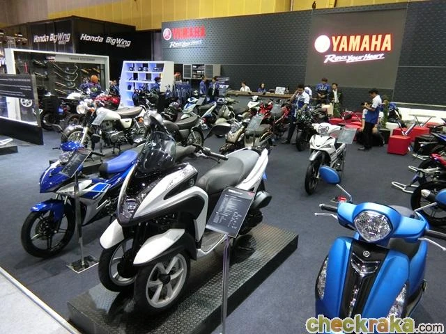 ยามาฮ่า ร่วมงานพร้อมด้วยแคมเปญพิเศษ หลายหลายรุ่น พร้อมเปิดตัวรถใหม่ จัดยิ่งใหญ่ ภายในบูธอลังการ เช่น Yamaha SR400, YAMAHA TRICITY, YAMAHA R15 เป็นต้น
