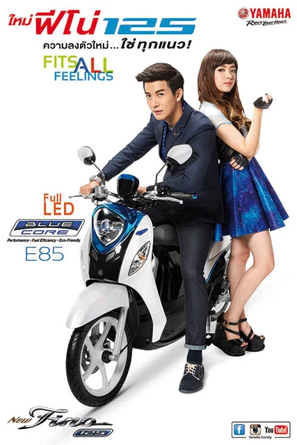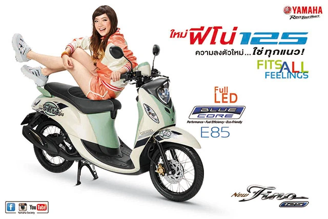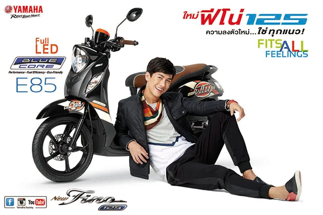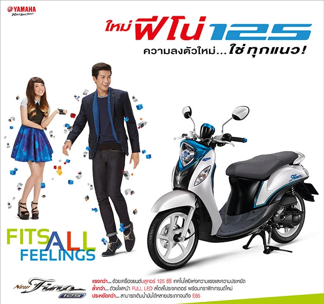 ยามาฮ่า ฟีโน่ 125 ความลงตัวใหม่...ใช่ทุกแนว Fits All Feelings มาพร้อมกับสุดยอดเทคโนโลยี "Blue Core" เครื่องยนต์เจเนอเรชั่นใหม่ของยามาฮ่า ที่พร้อมตอบสนองการขับขี่ให้เต็มไปด้วยความเร้าใจ และให้ความประหยัดน้ำมัน และยังสามารถเติมน้ำมันได้ถึง E85 สะดวก ประหยัดในทุกการใช้งาน "ยามาฮ่า ฟีโน่ 125" ยังเพียบพร้อมไปด้วยคุณสมบัติต่างๆ อย่างครบครัน ไม่ว่าจะเป็น ไฟหน้า Full LED แบบ Diamond Cut, เรือนไมล์แยกส่วนดีไซน์เป็นเอกลักษณ์, ไฟ Eco lamp แสดงอัตราการสิ้นเปลืองน้ำมัน, Mega box ใหญ่ขึ้นเป็น 8.2 ลิตร, กุญแจรีโมทอัจฉริยะ Answer Back System "ยามาฮ่า ฟีโน่125 ใหม่" มาพร้อมกับ 2 พรีเซนเตอร์ใหม่ กับพระเอกหนุ่มรุ่นใหม่ "ดีเจพุฒ" พุฒิชัย เกษตรสิน และ "พลอยชมพู" ญานนีน ภารวี ไวเกล สาวน้อยเสียงใส เจ้าของฉายา "สาวน้อยร้อยล้านวิว"