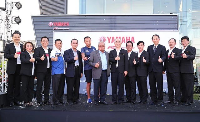 มร. เท็ตสึยะ อินะมูระ (คนที่ 6 จากขวา) ประธานกรรมการบริหาร บริษัท ไทยยามาฮ่ามอเตอร์ จำกัด พร้อมด้วยผู้บริหารระดับสูง และแขกผู้มีเกียรติ ร่วมทำพิธีเปิดโชว์รูม "ยามาฮ่า ไรเดอร์ส คลับ" (Yamaha Riders' Club) ศูนย์บริการที่ได้มาตรฐานเพื่อรองรับความต้องการของลูกค้าแบบครบวงจร ทั้งในส่วนของมุมโชว์รถรุ่นต่างๆ ศูนย์อะไหล่ และบริการโดยช่างเทคนิคผู้มีความชำนาญ และมีบริเวณร้านกาแฟ พร้อมพื้นที่ทดสอบการขับขี่ ซึ่งมีพื้นที่ 1.5 ไร่ บนถนนเกษตร-นวมินทร์ พร้อมทั้งเปิดตัวรถรุ่นใหม่จำนวน 3 รุ่น ได้แก่ YZF-R1 60th Anniversary Edition ฉลอง 60 ปี การเข้าร่วมแข่งขัน ในรายการระดับโลก, FJ-09 The two souls of the dark side รถแอดเวนเจอร์ทัวร์ริ่งที่มาพร้อมกับเครื่องยนต์ 3 สูบ และ Bolt-C The Cafe' Racer Style ออกแบบมาเพื่อนักบิดสไตล์คาเฟ่