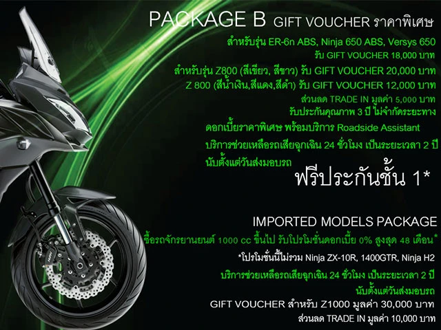 (โปรโมชั่นนี้ ยกเว้น Ninja ZX-10R , Ninja H2 ) - พิเศษสำหรับ 650 - 800 cc. มีให้เลือก Package ดังนี้