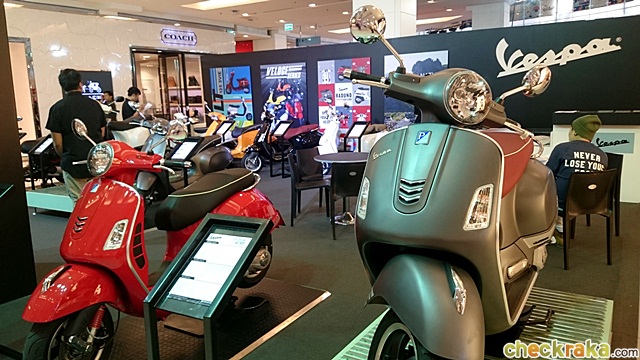 ร่วมกับพันธมิตรสถาบันทางการเงินกรุงศรี ออโต้ จัดโปรโมชั่นพิเศษดอกเบี้ยอัตราเริ่มต้นเพียง 0.75% ต่อเดือน ผ่อนเริ่มต้นเพียง 2,348 บาท สำหรับรุ่น 125 cc หรือ 3,271 บาท สำหรับรุ่น 150 cc แถมฟรี ค่าจดทะเบียน พ.ร.บ. และประกันรถหาย* พิเศษสุดรับของพรีเมียมเมื่อจองรถสกู๊ตเตอร์ทุกคันภายในงาน **ค่าจดทะเบียน พ.ร.บ. และประกันรถหายแถมให้กับรถสกู๊ตเตอร์เวสป้าเฉพาะรุ่นกรุณาตรวจสอบรายละเอียดกับพนักงานขาย