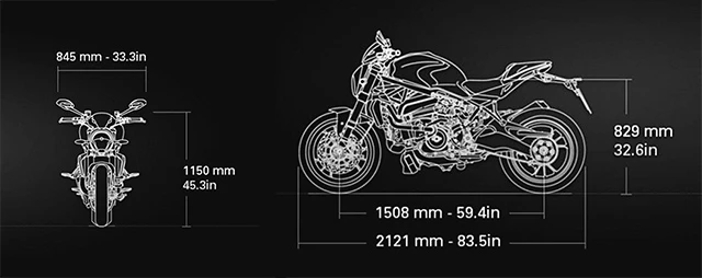 Ducati Monster 1200R ปี 2016 เผยโฉมแล้วใน Frankfurt Motor Show ที่ผ่านมา รูปทรงคงความเป็นสปอร์ตดิบๆ ในสไตล์ "Naked" โครงเปลือยเปล่าโชว์เครื่องยนต์แบบ L-Twin 2 สูบ 4 วาลว์ต่อสูบ 1,198.4 ซีซี อัตราส่วนการอัด 13.0 : 1 กำลังสูงสุด 160 แรงม้า ที่ 9,250 รอบต่อนาที แรงบิด 131.4 นิวตัน-เมตร ที่ 7,750 รอบต่อนาที จ่ายน้ำมันด้วยหัวฉีด ลิ้นปีกผีเสื้อขนาด 56 มิลลิเมตร ควบคุมด้วยไฟฟ้า ท่อไอเสียน้ำหนักเบาแบบ 2-1-2 เกียร์ 6 จังหวะ ระบบมัลติเพลตคลัตช์ ความเร็วสูงสุดเคลมไว้ที่ 250 กิโลเมตรต่อชั่วโมง