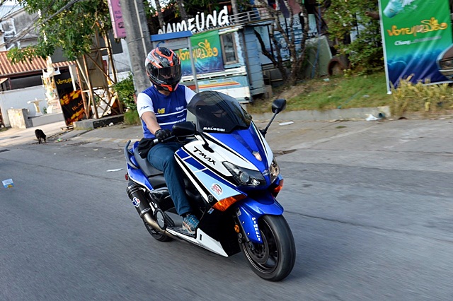 การใช้งาน TMAX ในเมืองนับว่าคล่องตัวไม่น้อย และนั่งขี่สบายกว่ามอเตอร์ไซค์ทั่วไปเยอะ
