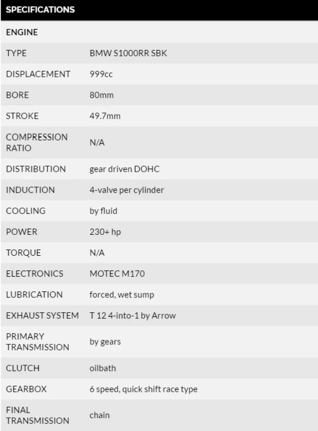 เป้าหมายของ Tamburini คือ ซูเปอร์ไบค์ที่ปลอดภัย เบา และมีขนาดกะทัดรัด ด้านเครื่องยนต์ 4 สูบที่ได้พื้นฐานจาก BMW S1000RR เขาศึกษาการออกแบบเฟรมรถให้สอดรับกับสภาพภูมิประเทศที่ขี่และให้ผู้ขี่สามารถปรับแต่งให้เหมาะกับสไตล์ของตน ซึ่งเฟรมนี้ทำจากคาร์บอนไฟเบอร์เกรด aerospace