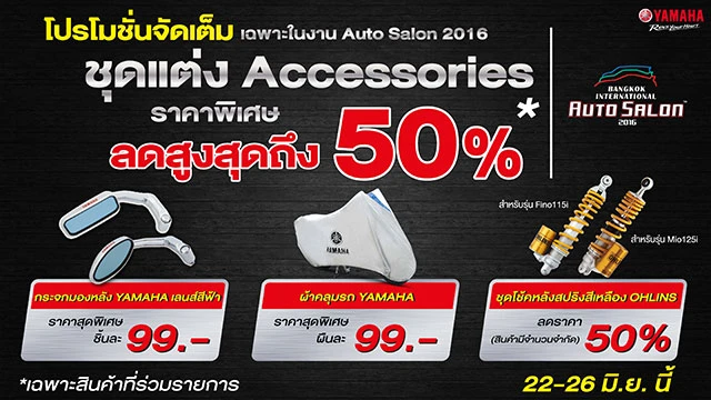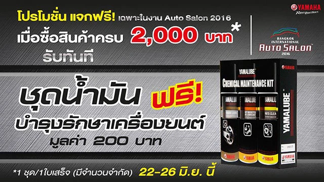 ยามาฮ่าเปิดบูธรถแต่งโชว์ ภายใต้แนวความคิด "Yamaha Rev Salon" ต่อยอดแบรนด์สโลแกน "Revs Your Heart เร่งชีวิตให้เร้าใจ" พร้อมสัมผัสทัพรถแต่งแนวสปอร์ตทุกสไตล์ โดยในครั้งนี้ยามาฮ่านำรถจักรยานยนต์มาจัดแสดงโชว์ในรูปแบบ Series ตอบรับกระแส Big Bike Fever เพื่อตอบสนองความต้องการของลูกค้าทุกสไตล์ ในงาน "บางกอก อินเตอร์เนชั่นแนล ออโต้ ซาลอน ครั้งที่ 4" พร้อมรับข้อเสนอสุดพิเศษมากมาย ระหว่างวันที่ 22 - 26 มิถุนายน 2559 ณ อาคารชาเลนเจอร์ ฮอลล์ 3 อิมแพ็ค เมืองทองธานี