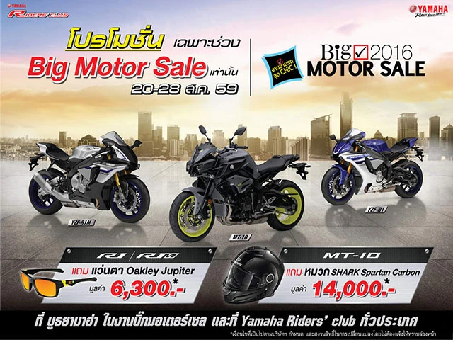 - จอง YZF-R3 และ MT-03 รับฟรี ประกันภัยชั้น 1, ทะเบียน, พ.ร.บ., และ Gift Voucher มูลค่า 5,000 บาท รวมมูลค่า 21,000 บาท