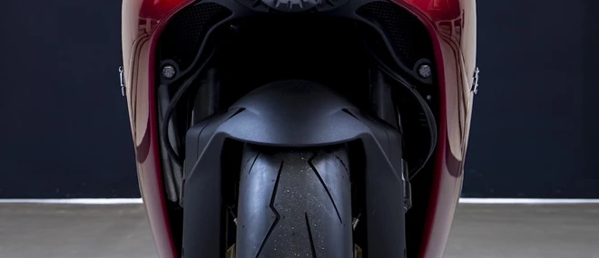 ในภาพเผยให้เห็นรายละเอียดของ F4Z โดยแฟริ่งชิ้นหลักยึดกับชิ้นย่อยด้วยสกรูจาก dzus มีช่องดักอากาศข้างไฟหน้า LED