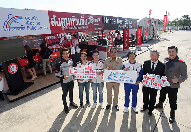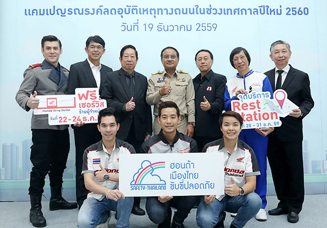 เอ.พี. ฮอนด้า มุ่งมั่นดำเนินกิจกรรมด้านการขับขี่ปลอดภัยในเมืองไทยมาอย่างต่อเนื่อง เปิดแคมเปญรณรงค์ลดอุบัติเหตุทางถนนในช่วงเทศกาลปีใหม่ 2560 ภายใต้โครงการ "ฮอนด้าเมืองไทยขับขี่ปลอดภัย" โดยผนึกกำลังร่วมกับภาครัฐ เอกชน และองค์กรอิสระ พร้อมดึง จอห์น-วิญญู วงศ์สุรวัฒน์ พรีเซ็นเตอร์แคมเปญ "สังคมหัวแข็ง", ฟิล์ม รัฐภาคย์ และโฟลท รัฐพงษ์ วิไลโรจน์ สองพี่น้อง นักแข่งรถจักรยานยนต์ชื่อดังของเมืองไทย มาร่วมกันรณรงค์ผ่าน 3 กิจกรรมหลัก เริ่มจากกิจกรรมให้บริการตรวจเช็ครถจักรยานยนต์ฟรีที่ศูนย์ฮอนด้า วิง เซ็นเตอร์ ทั่วประเทศ รวมถึงจัดตั้งจุด Honda Rest Station จุดบริการพักรถพิเศษที่ตั้งบนทางหลวงสายมิตรภาพ เพื่อให้ผู้ขับขี่ได้พักเหนื่อยและสามารถนำรถเข้าซ่อมบำรุงได้สำหรับรถจักรยานยนต์ทุกประเภท พร้อมกันนี้ เอ.พี. ฮอนด้ายังได้ร่วมมือกับผู้จำหน่ายฯ จัดฝึกอบรมเตรียมความพร้อมให้กับนักศึกษาก่อนออกหน่วยบริการประชาชนของสำนักคณะกรรมการอาชีวศึกษาในช่วงเทศกาลปีใหม่ 250 จุดทั่วประเทศ