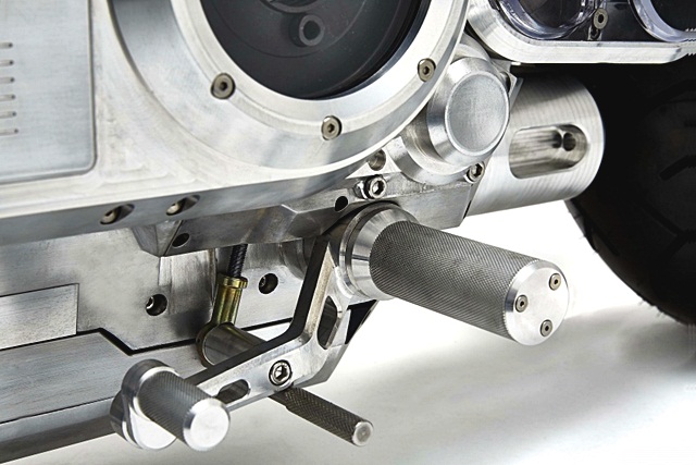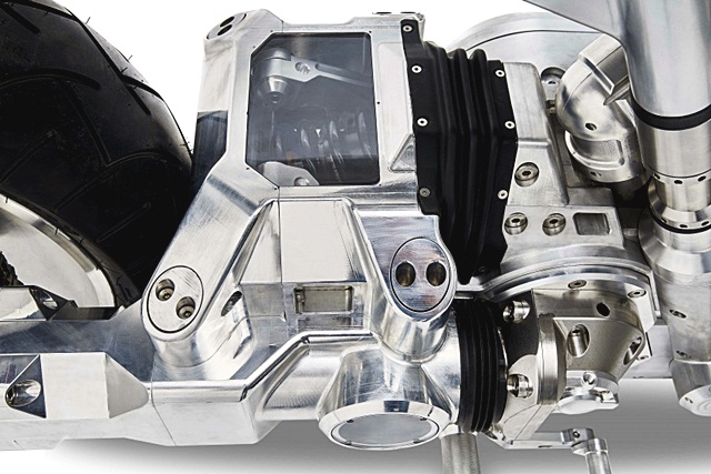 ทุกชิ้นส่วนเป็นโครงสร้างเป็น Frameless ขึ้นรูปทั้งแฮนด์ ที่พักเท้า แม้แต่ชุดท่อไอเสียก็ออกแบบให้ปิดมิดชิดด้วยโครงเหล็ก
